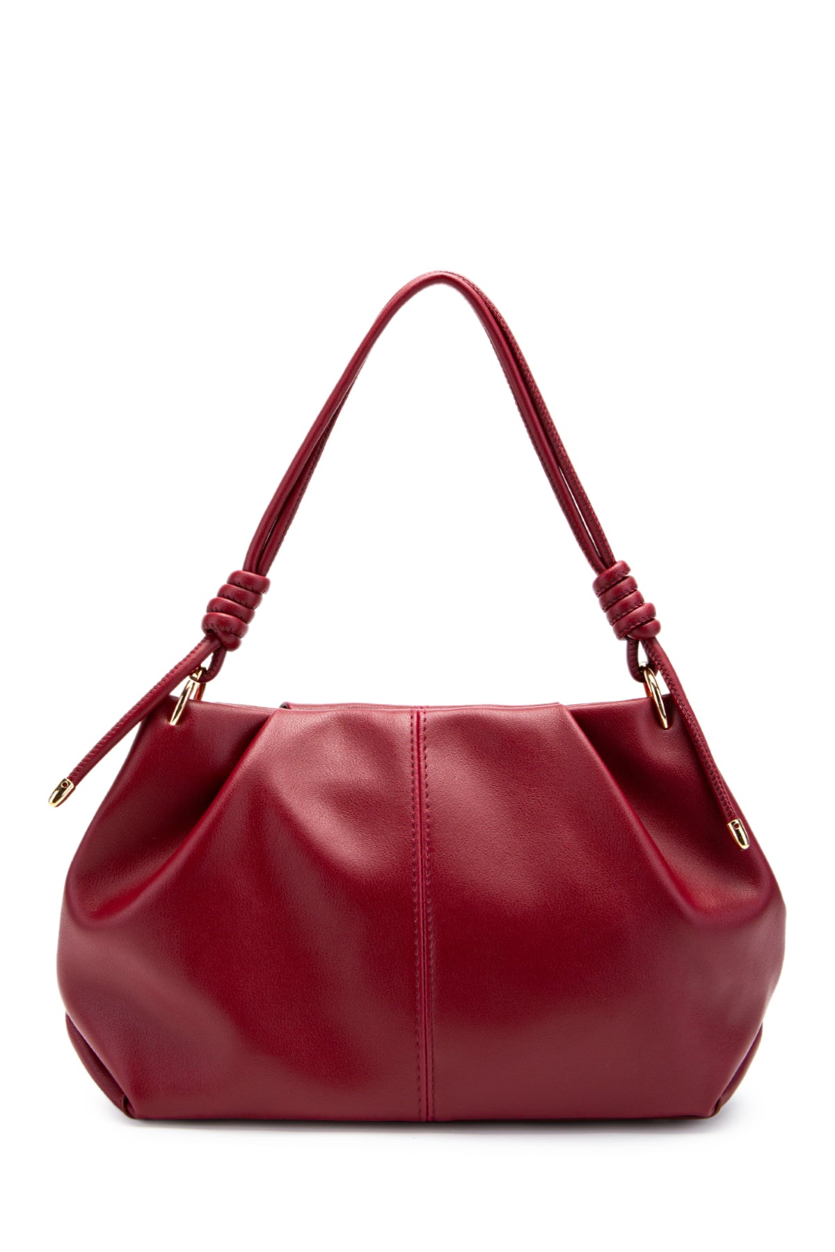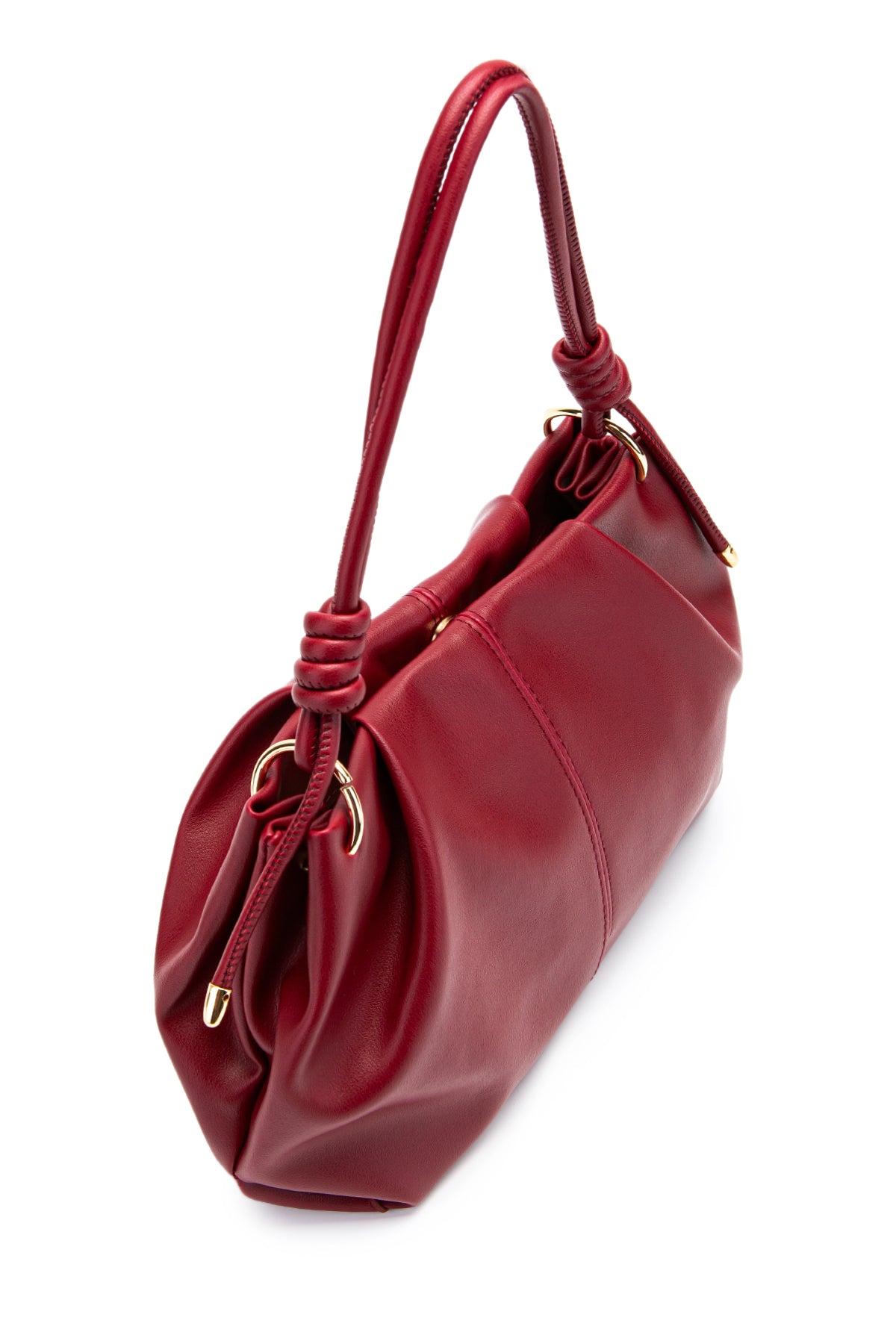 Büzgü Detaylı Suni Deri Chen Kol Çanta Bordo