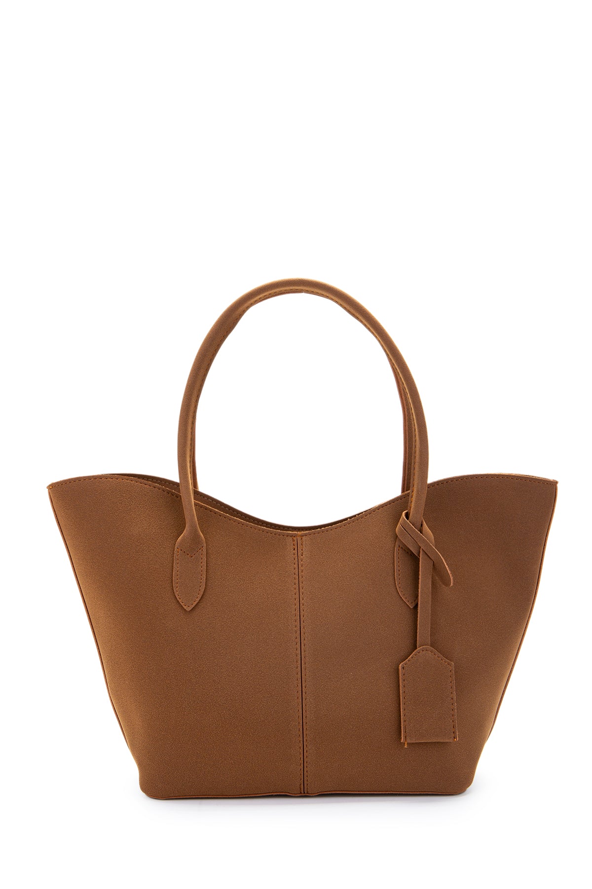 Çift Saplı Süet Hipe Kadın Kol Çantası Taba
