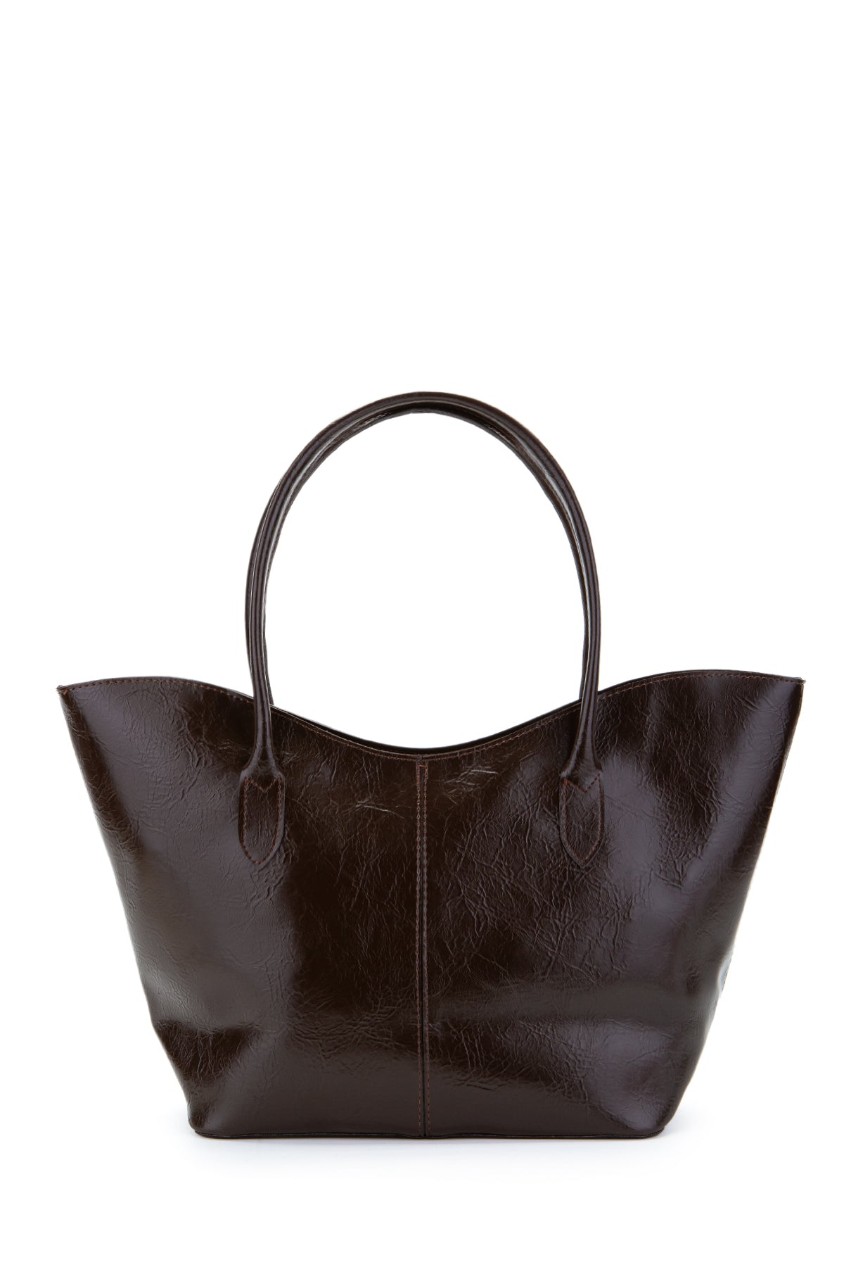 Çift Saplı Suni Deri Hipe Kadın Kol Çantası Kahverengi
