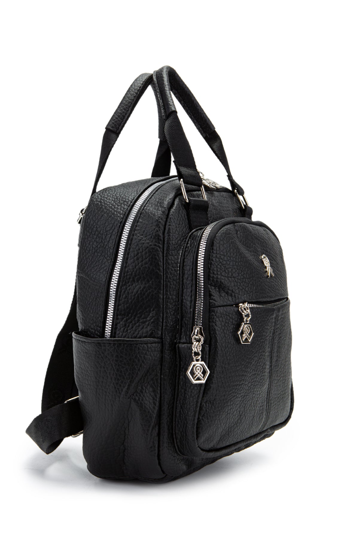 Çok Gözlü Suni Deri Bucky Sırt Çantası Siyah