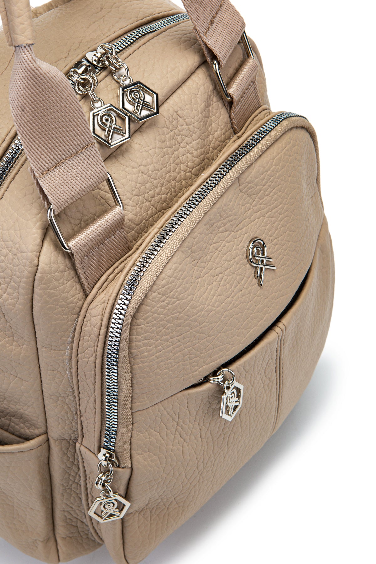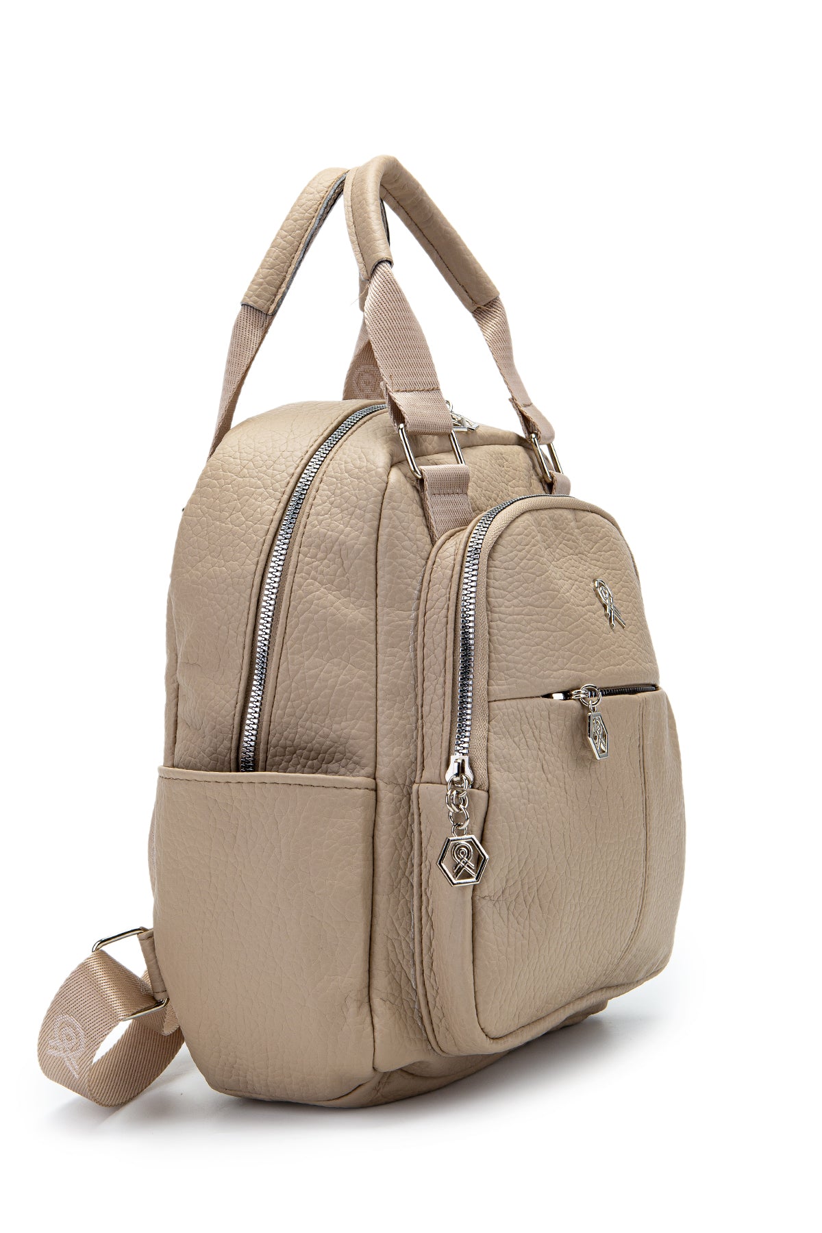 Çok Gözlü Suni Deri Bucky Sırt Çantası Vizon