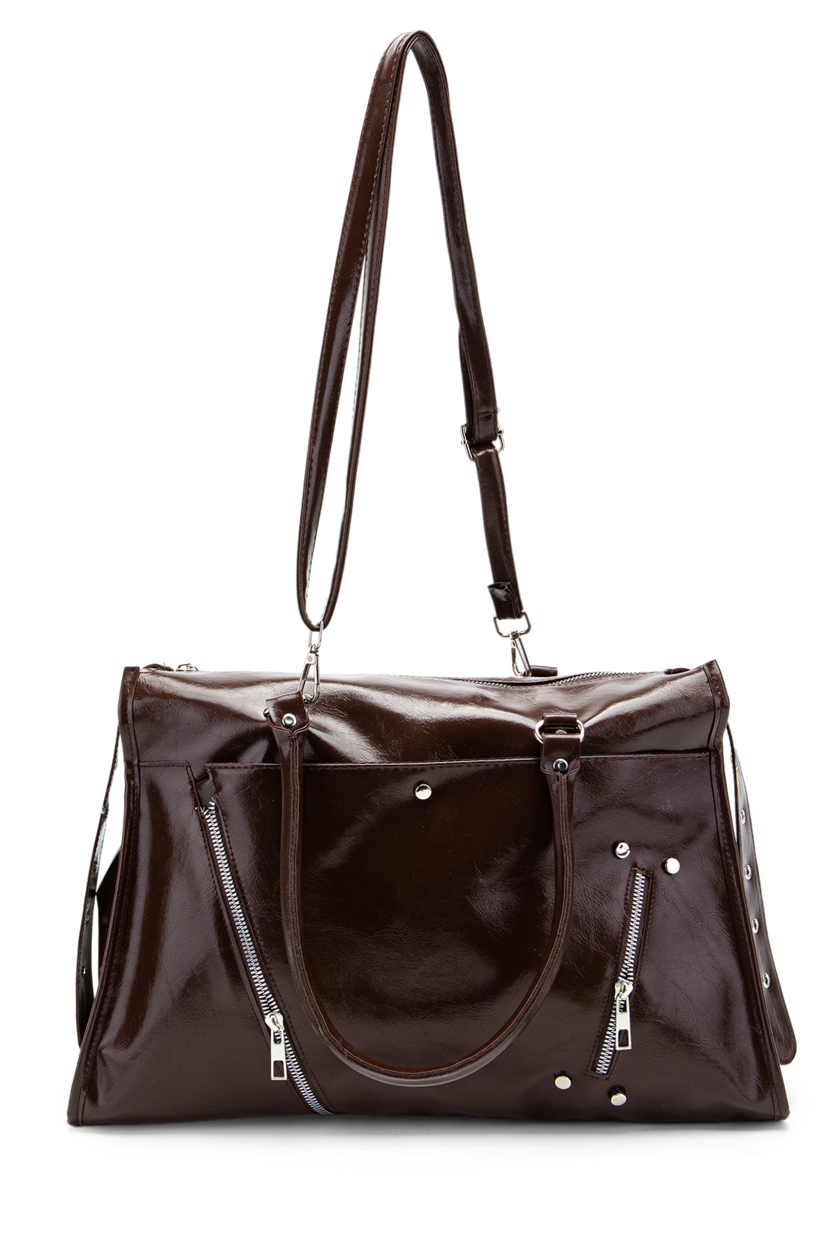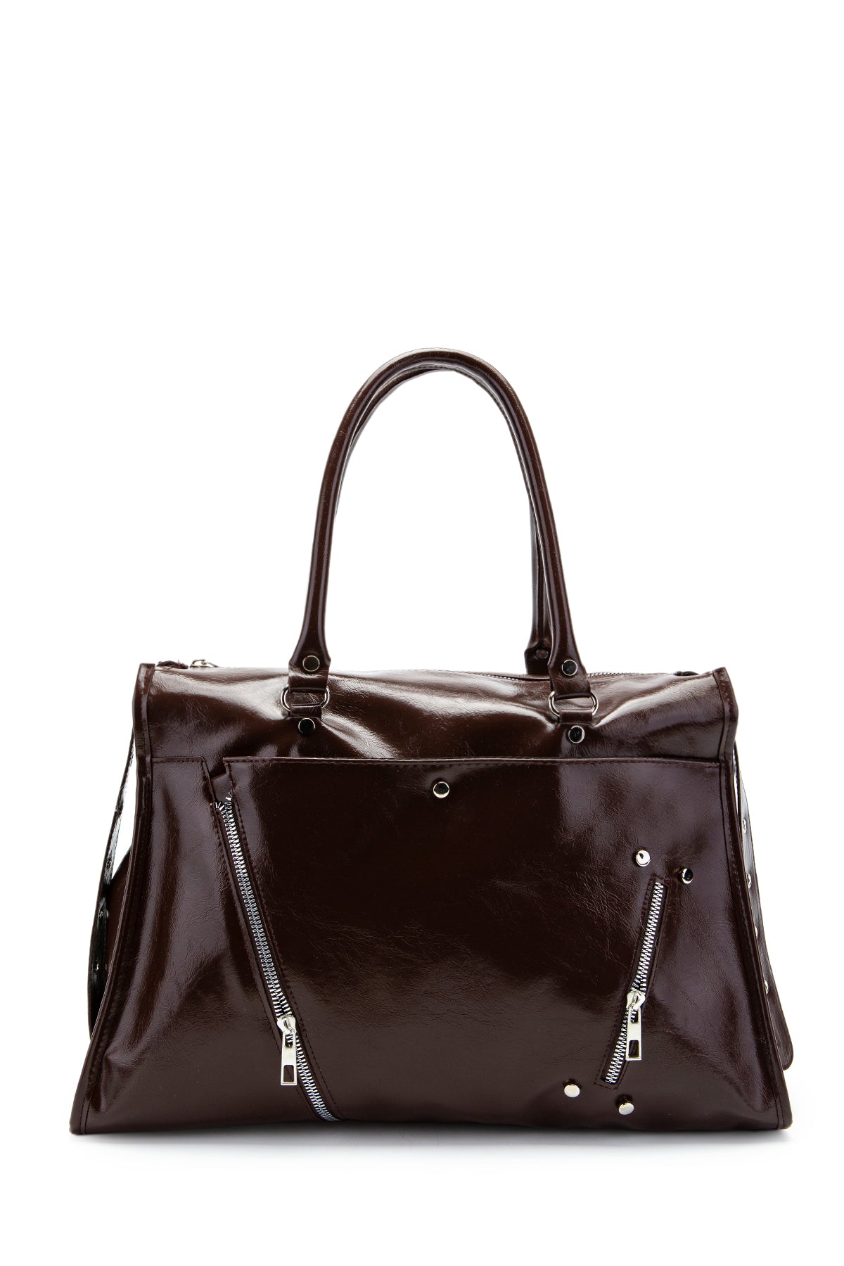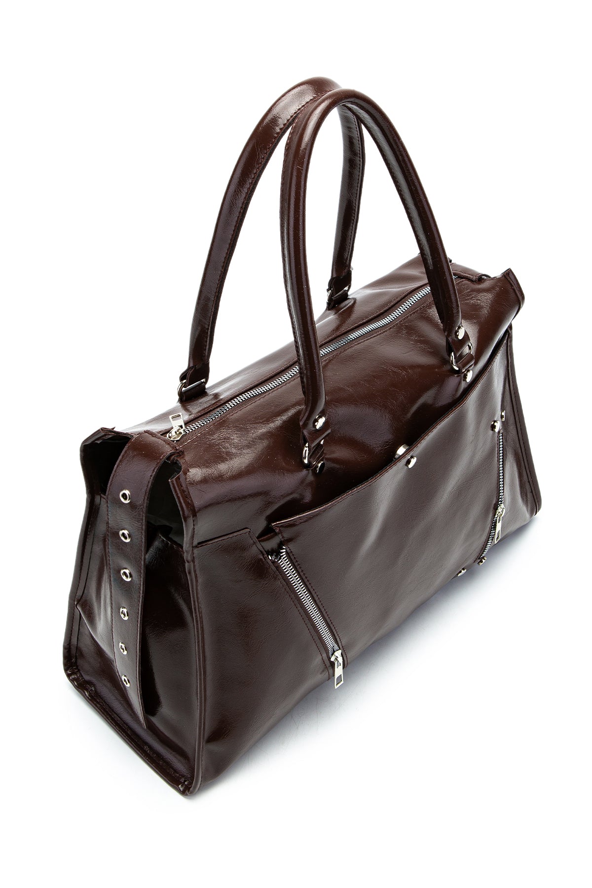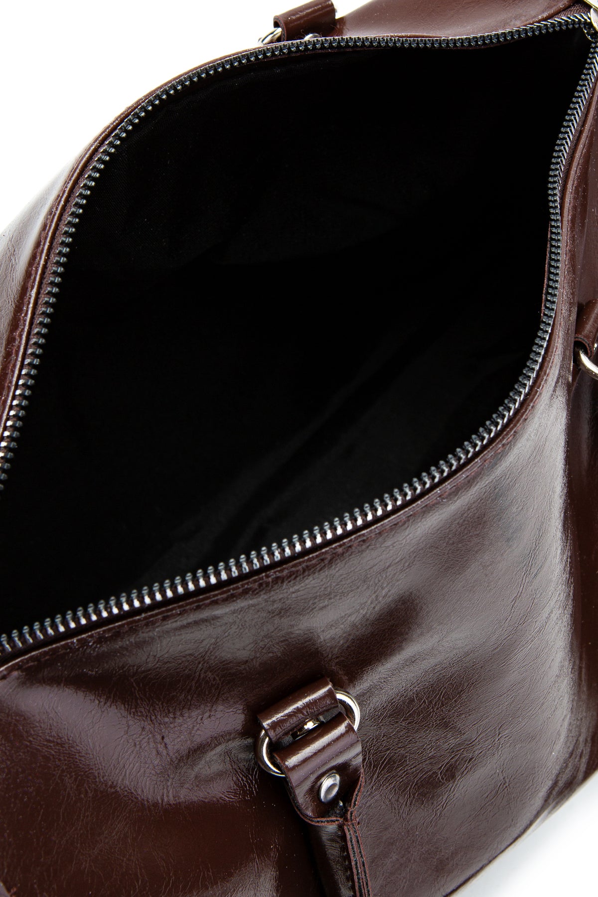 Fermuar Detaylı Rugan Tim Kol Çanta Kahverengi
