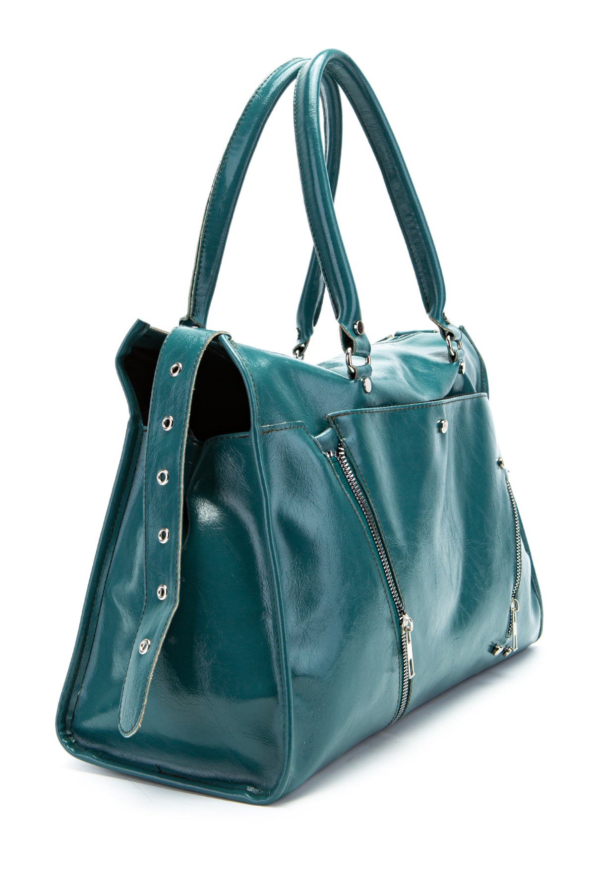 Fermuar Detaylı Rugan Tim Kol Çanta Mavi