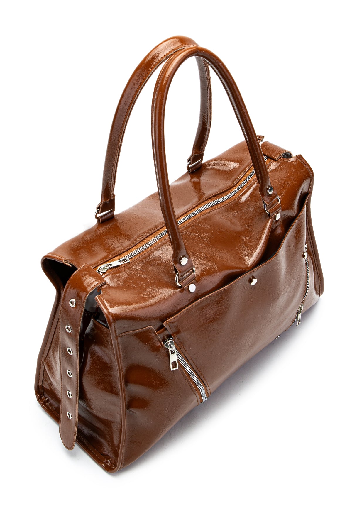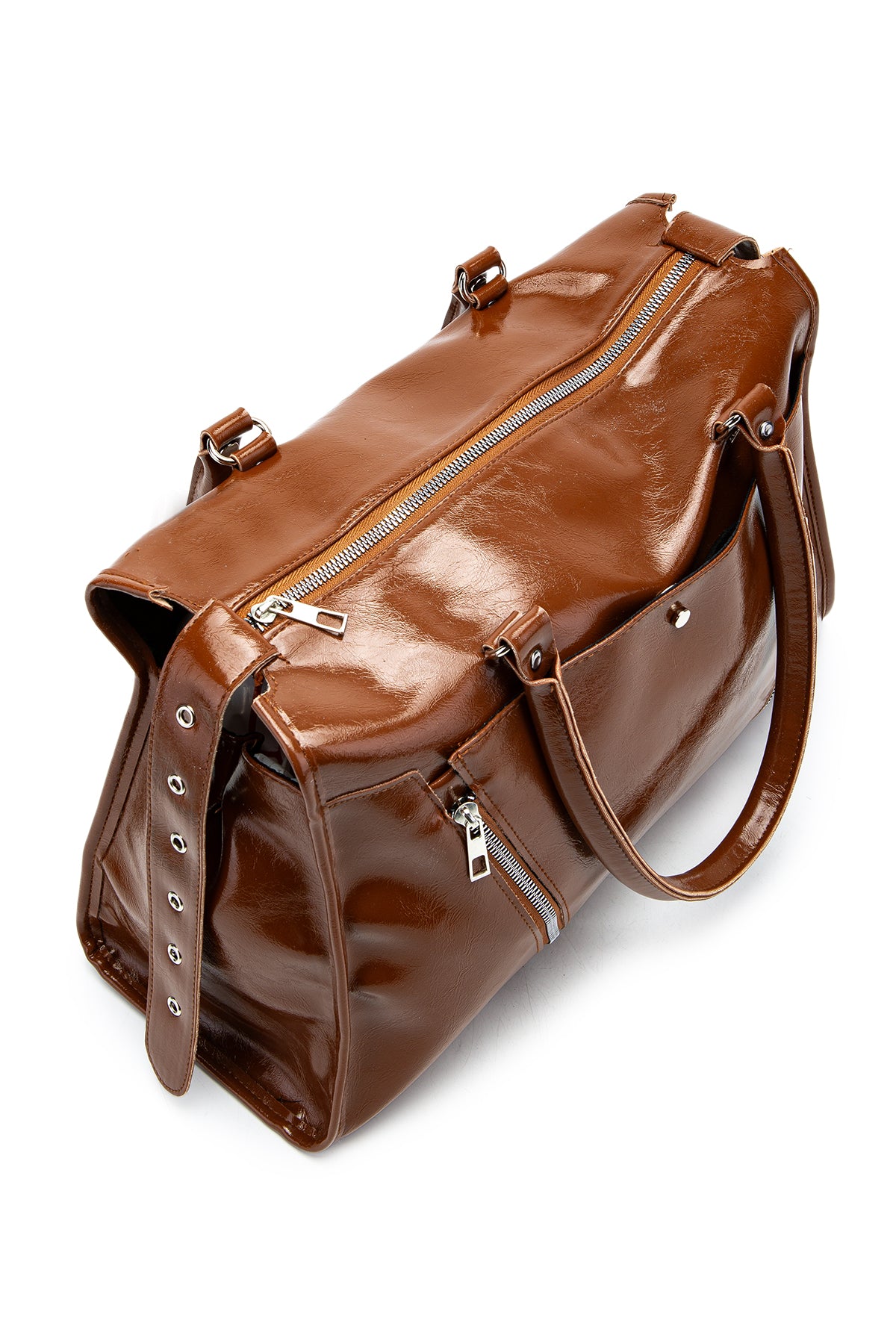 Fermuar Detaylı Rugan Tim Kol Çanta Taba