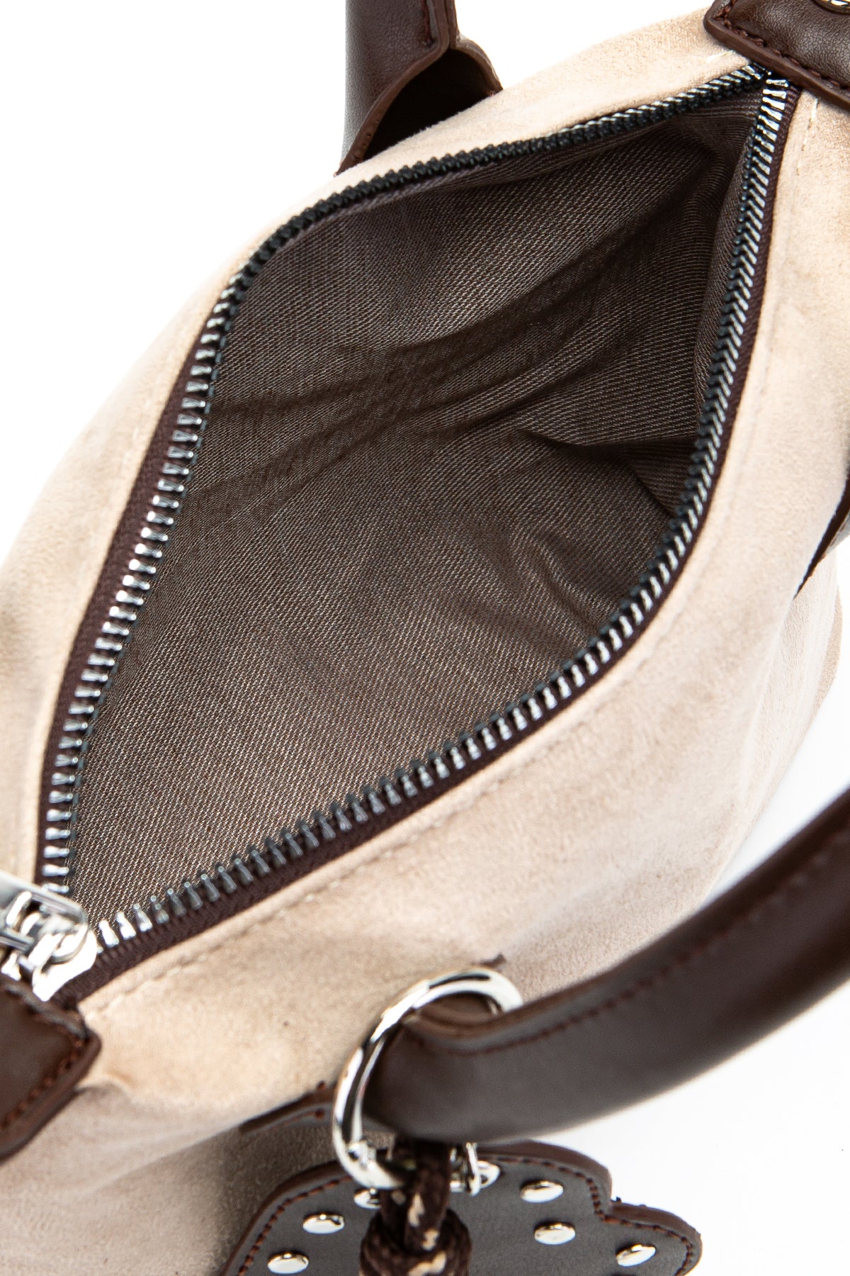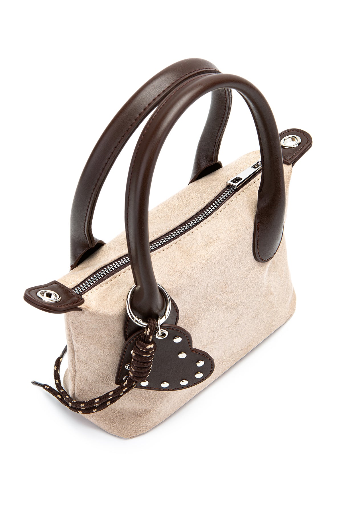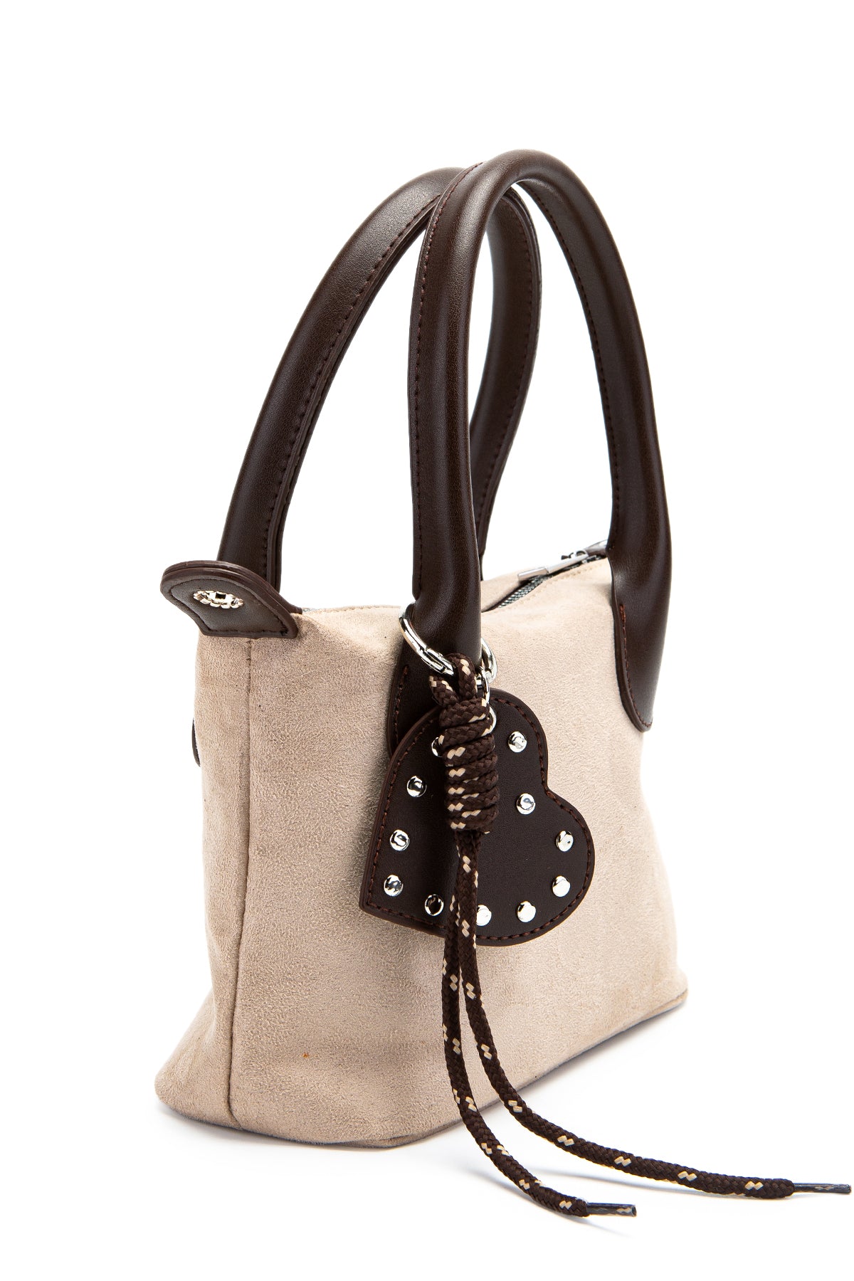 Kalp Charm Detaylı Süet Winter Çapraz Çanta Bej