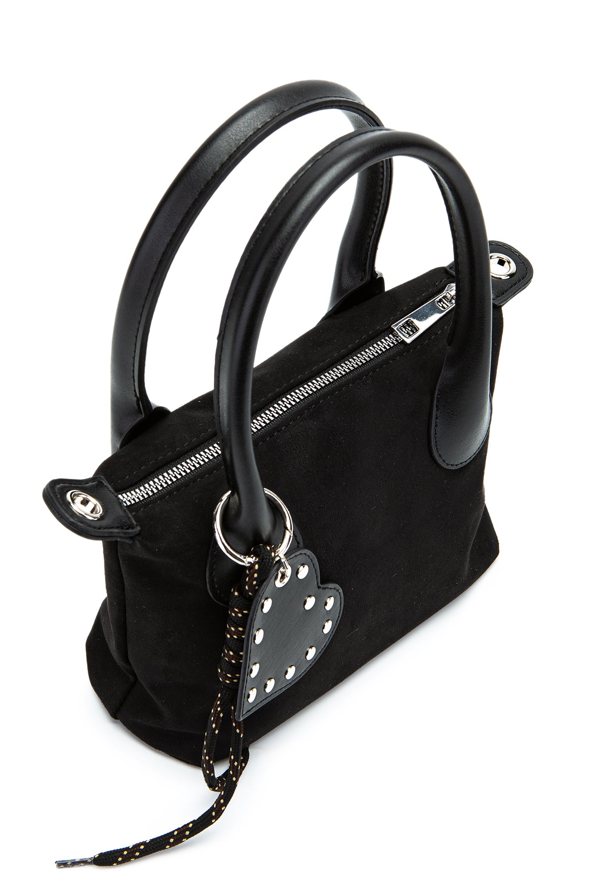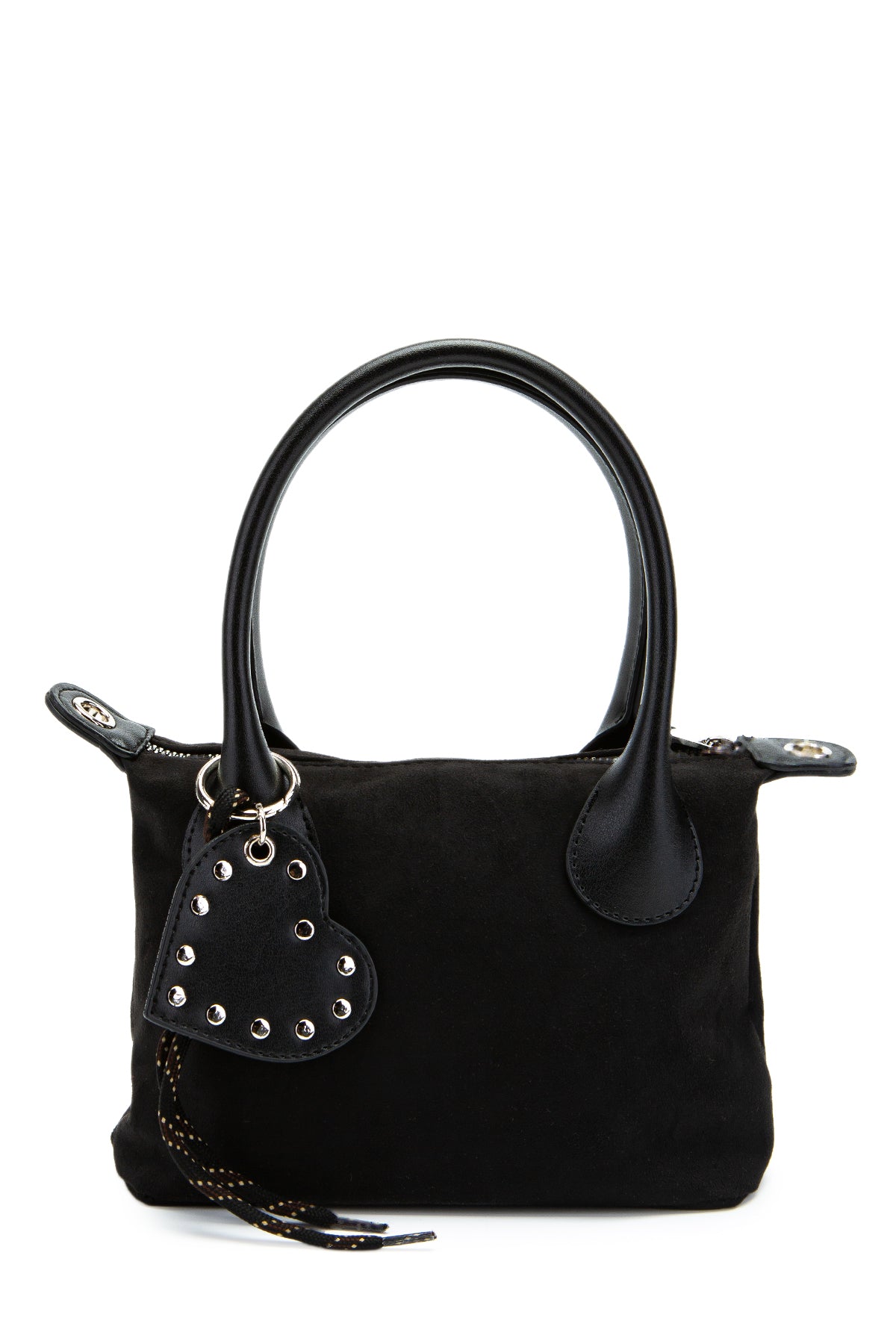 Kalp Charm Detaylı Süet Winter Çapraz Çanta Siyah
