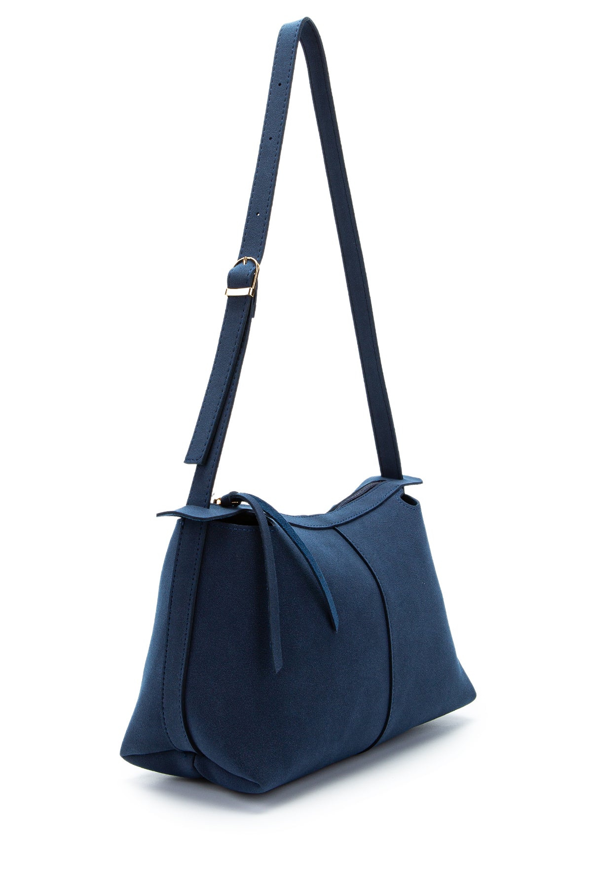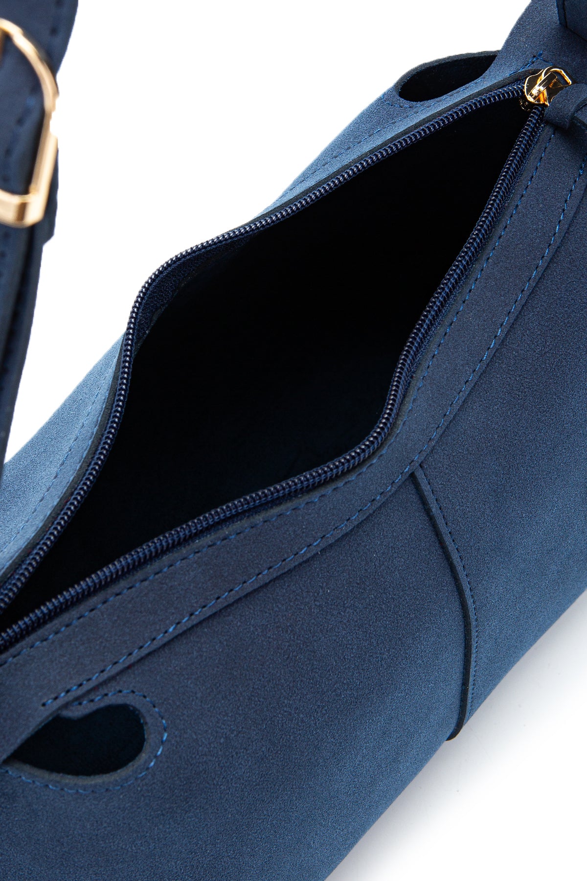 Kemer Askı Detaylı Baget Form Süet Talia Kadın Kol Çanta Lacivert