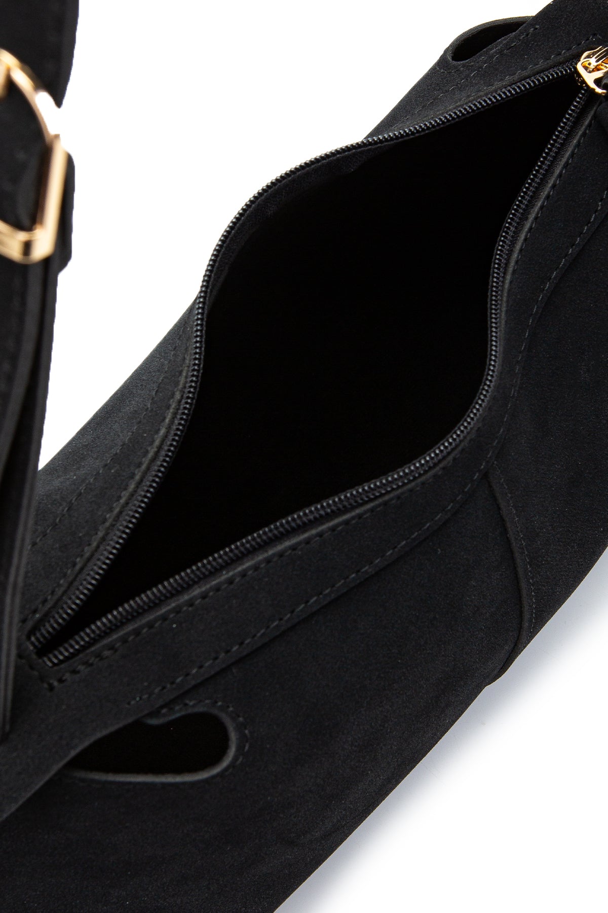 Kemer Askı Detaylı Baget Form Süet Talia Kadın Kol Çanta Siyah