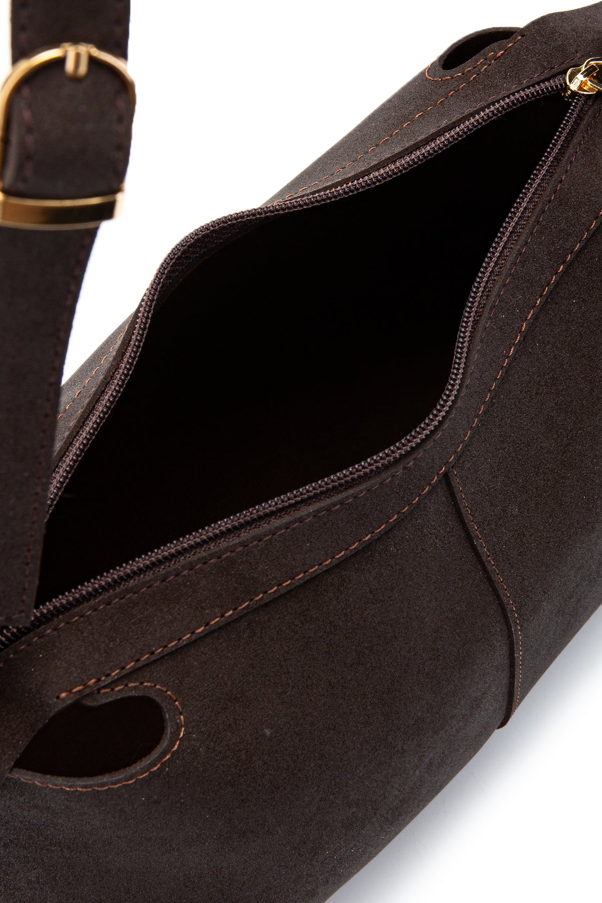 Kemer Askı Detaylı Baget Form Süet Talia Kadın Kol Çanta Kahve
