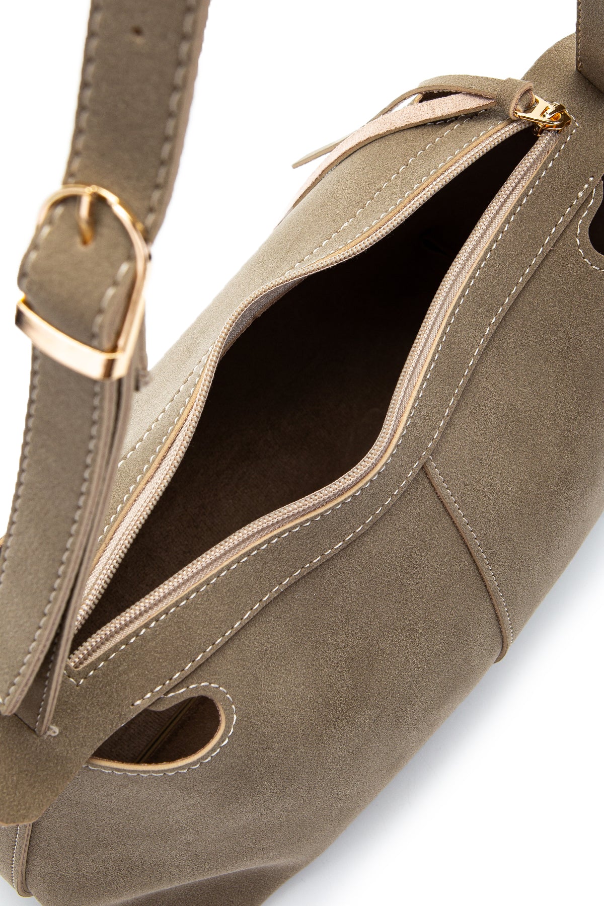 Kemer Askı Detaylı Baget Form Süet Talia Kadın Kol Çanta Vizon