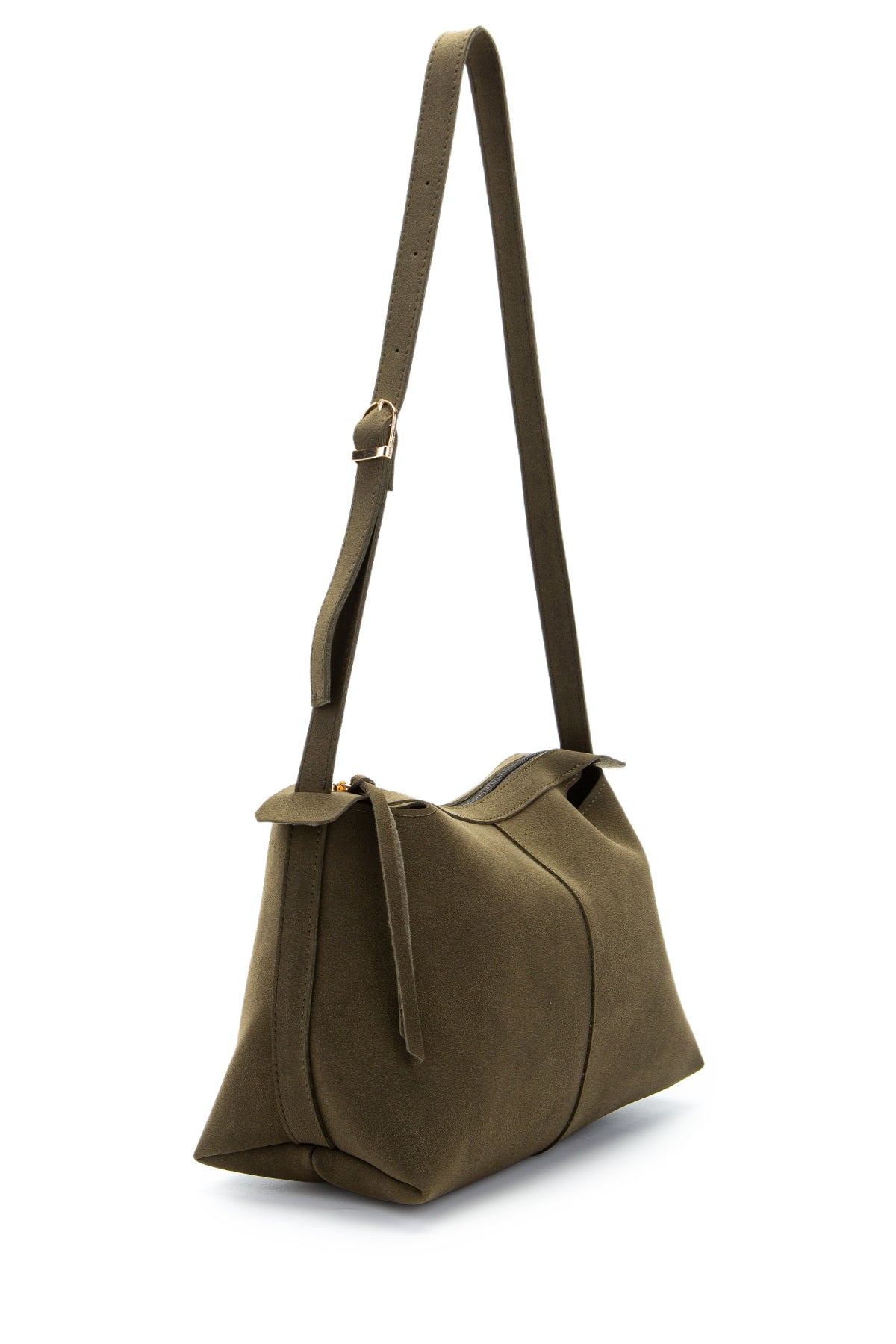Kemer Askı Detaylı Baget Form Süet Talia Kadın Kol Çanta Haki