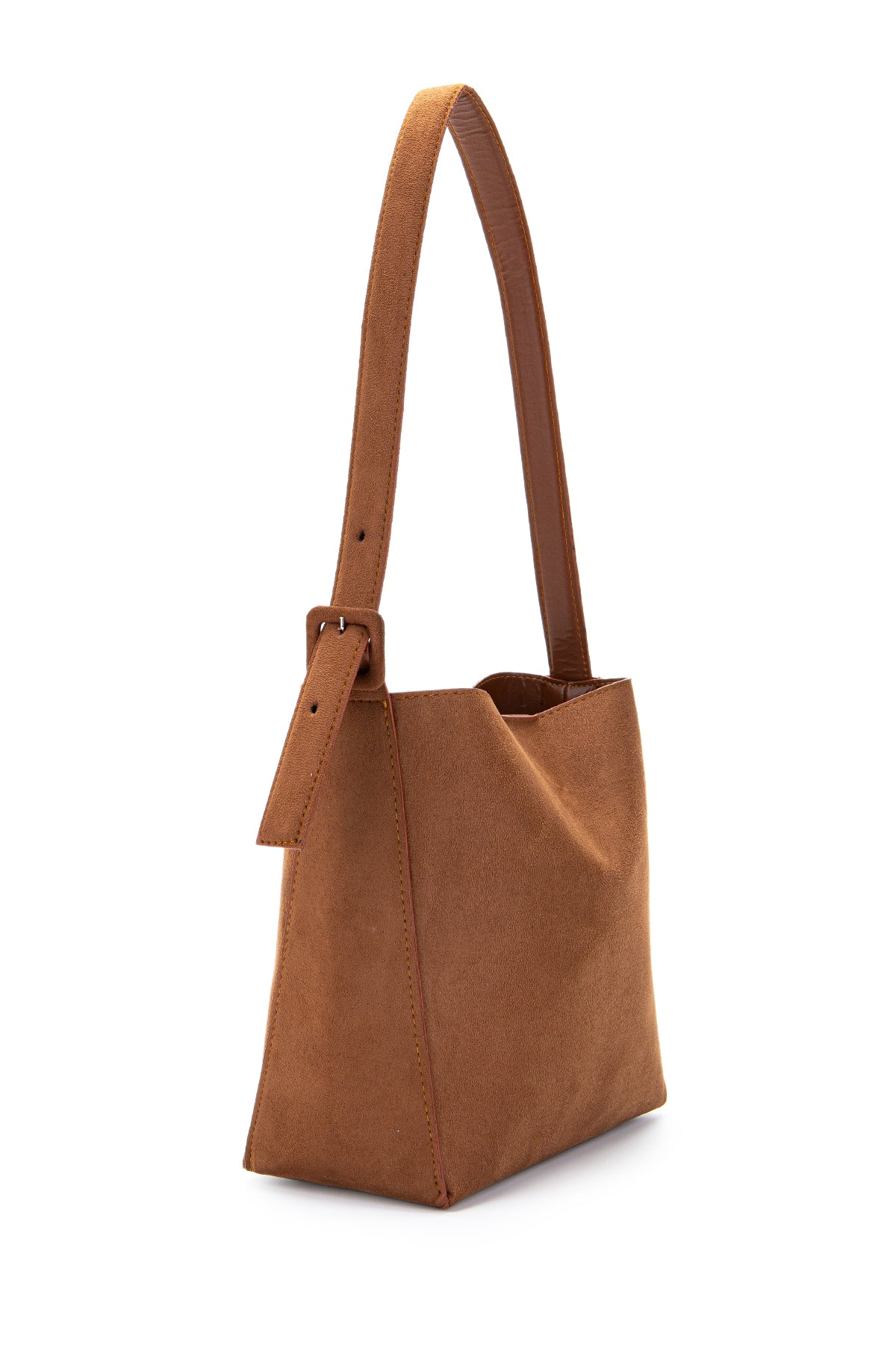 Kemer Askı Detaylı Süet Alita Kol Çanta Taba