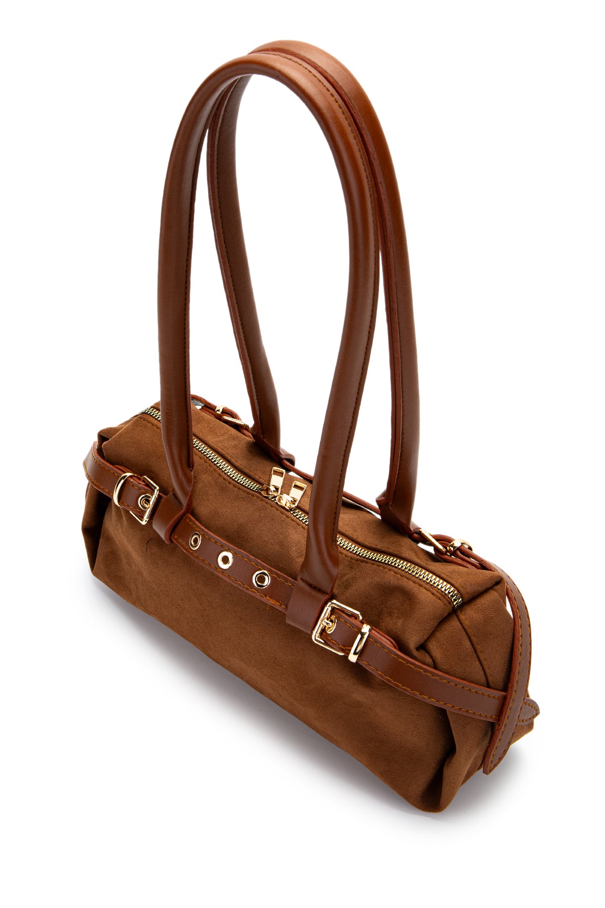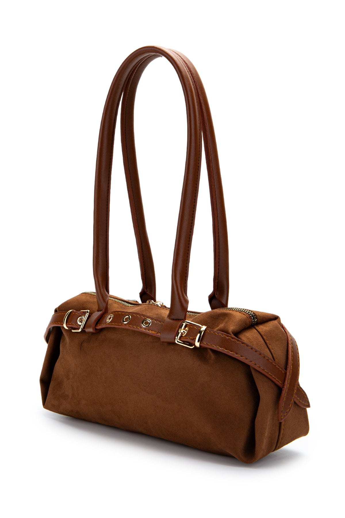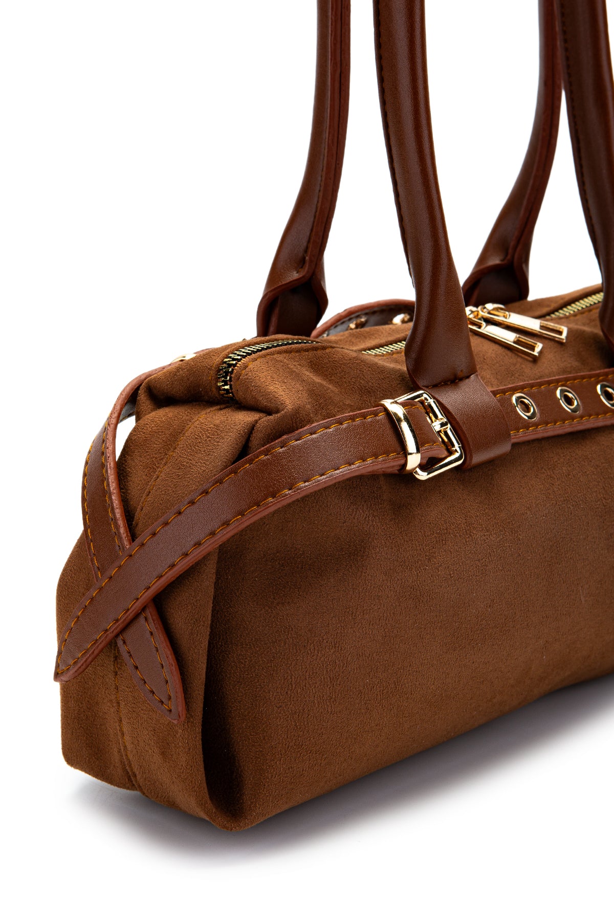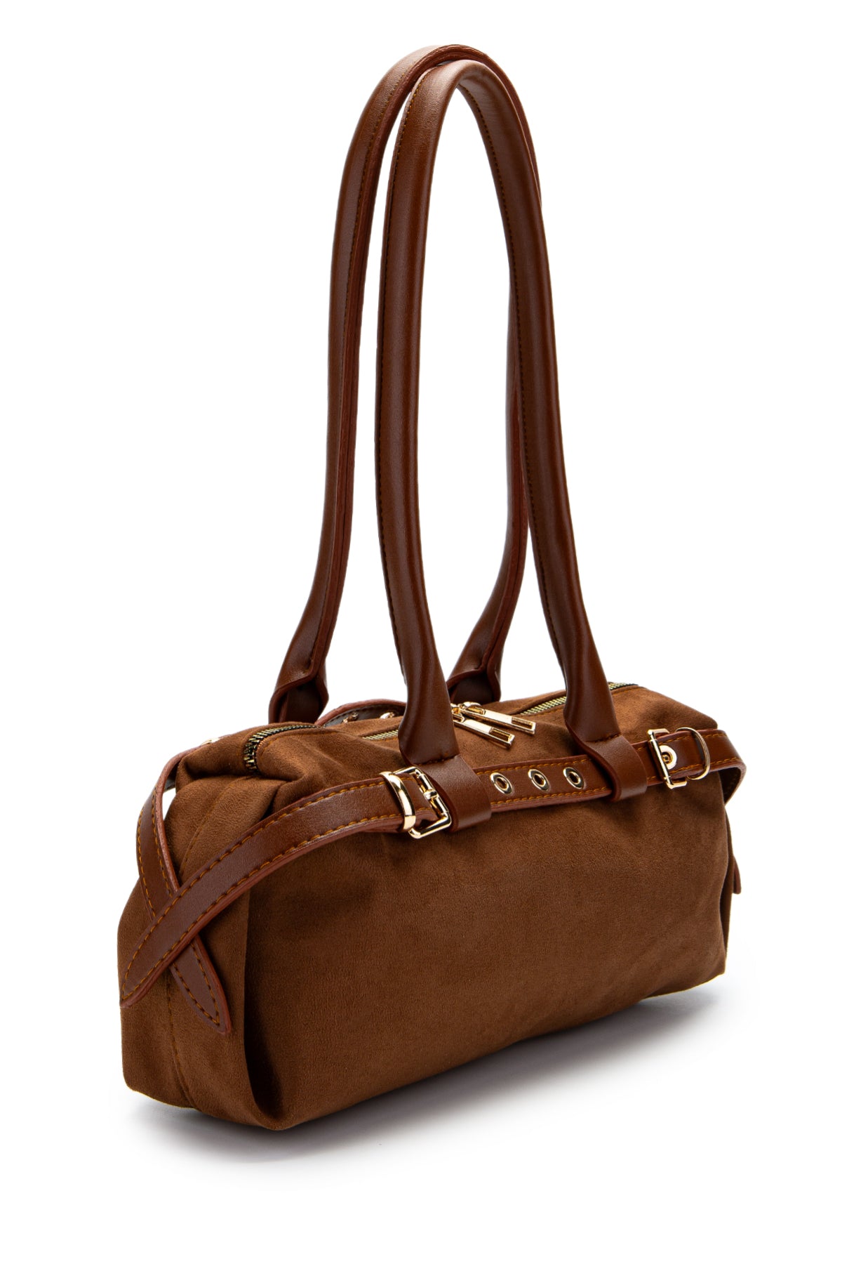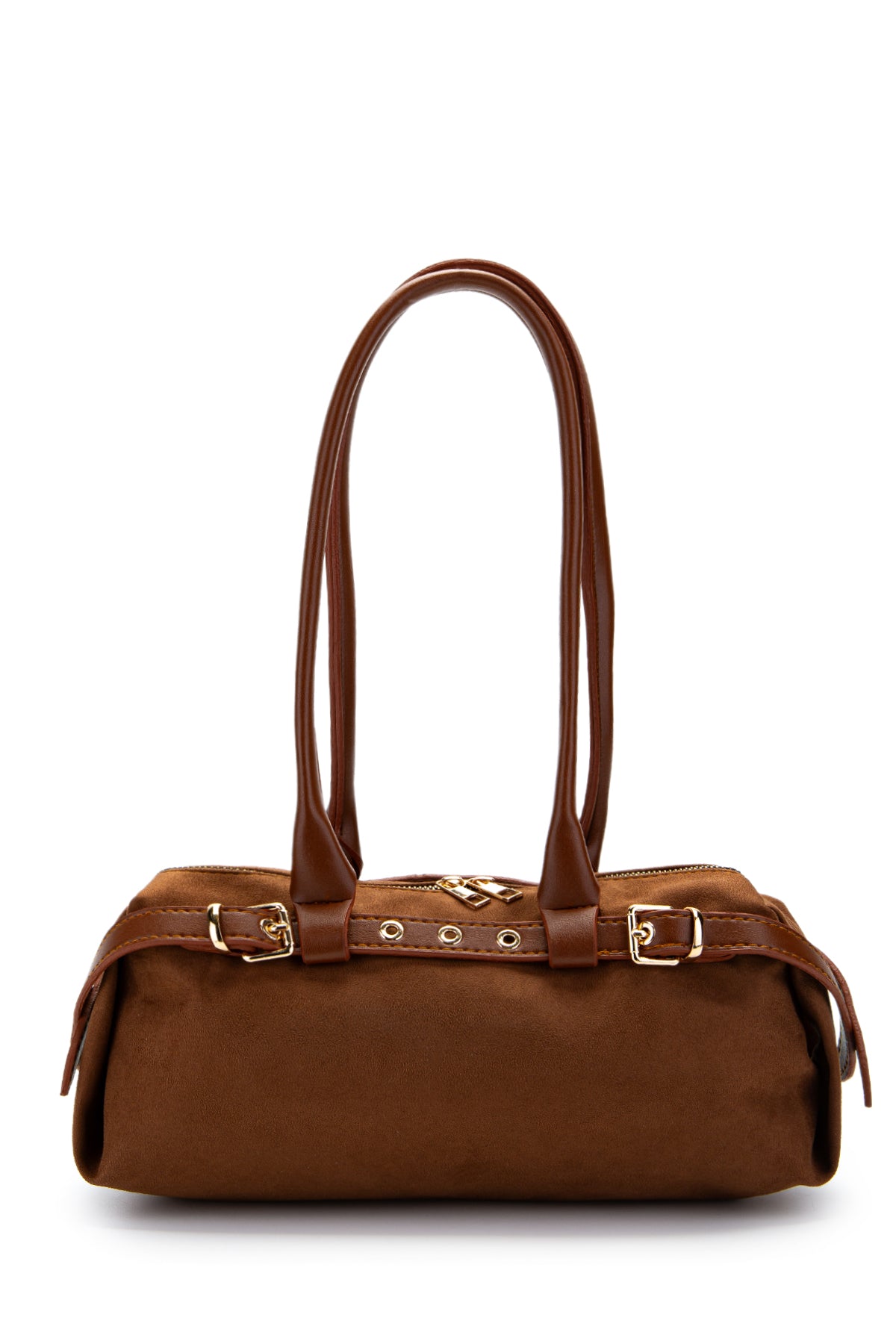 Kemer Detaylı Süet Kadın Omuz Çanta Anfora Taba
