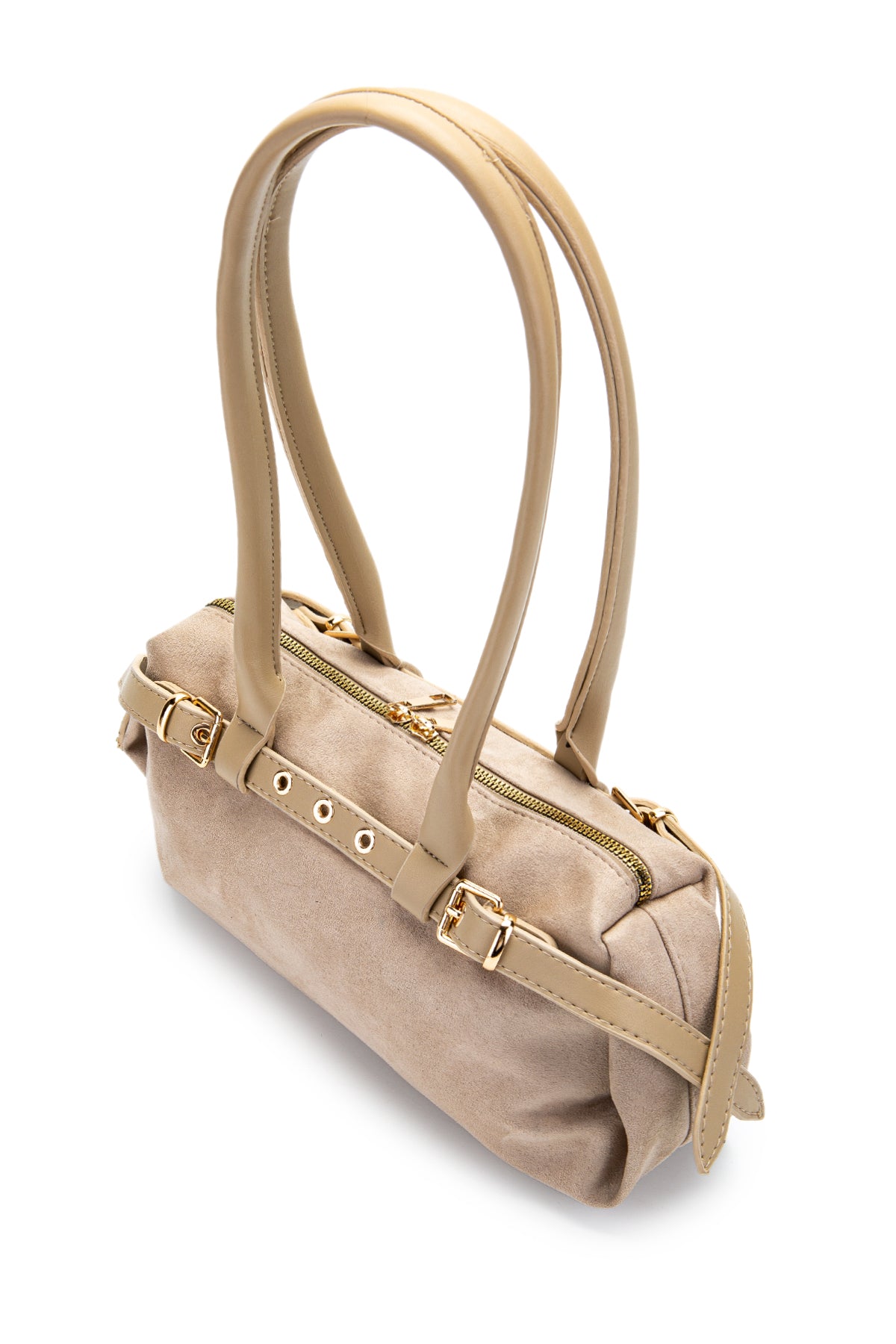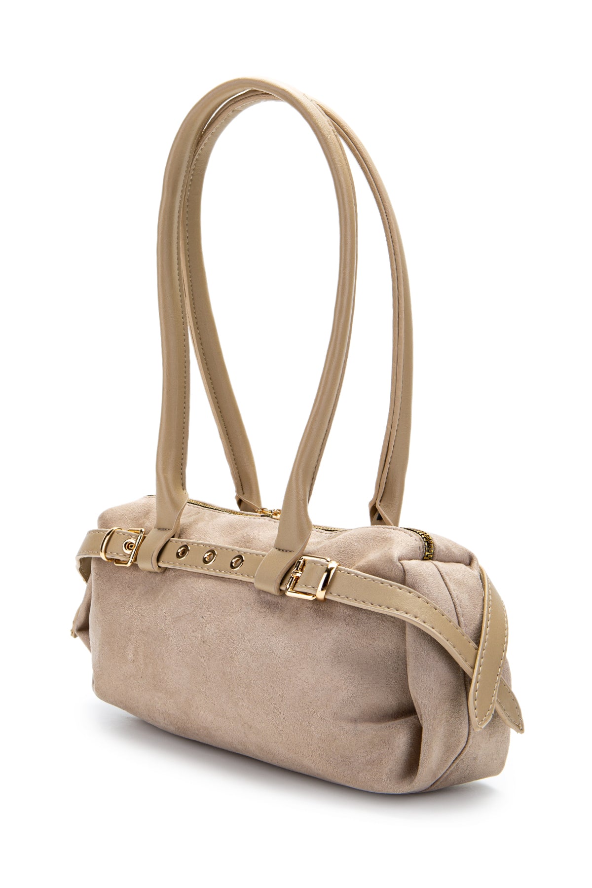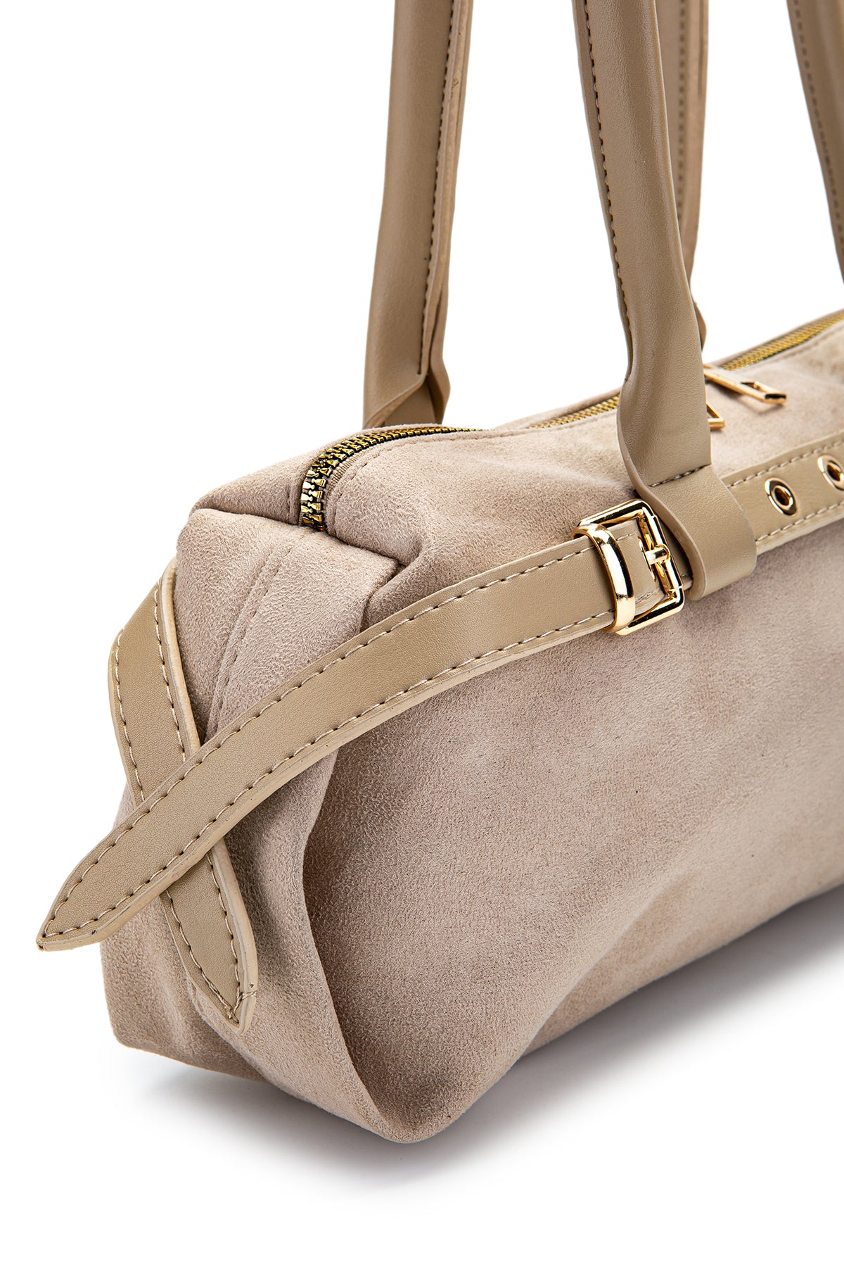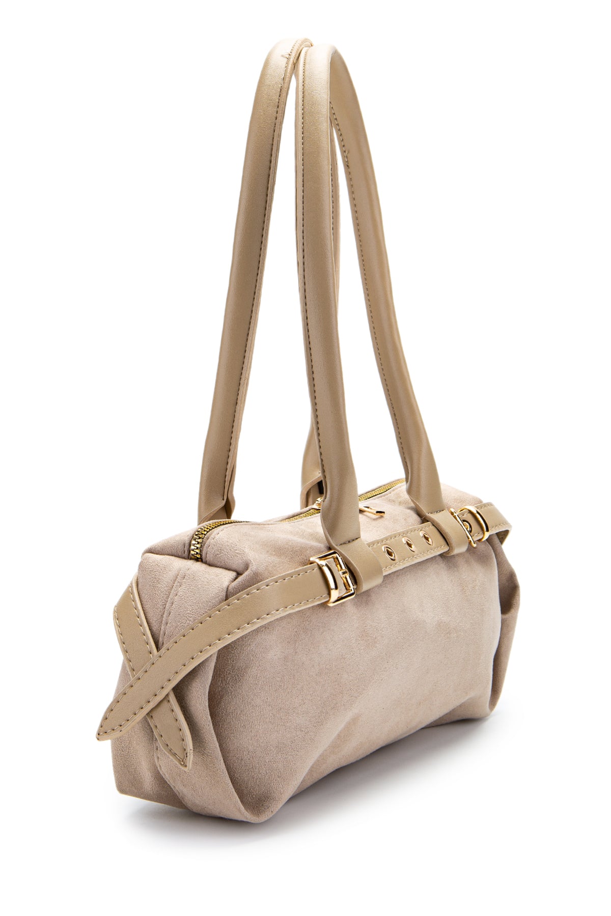 Kemer Detaylı Süet Kadın Omuz Çanta Anfora Vizon