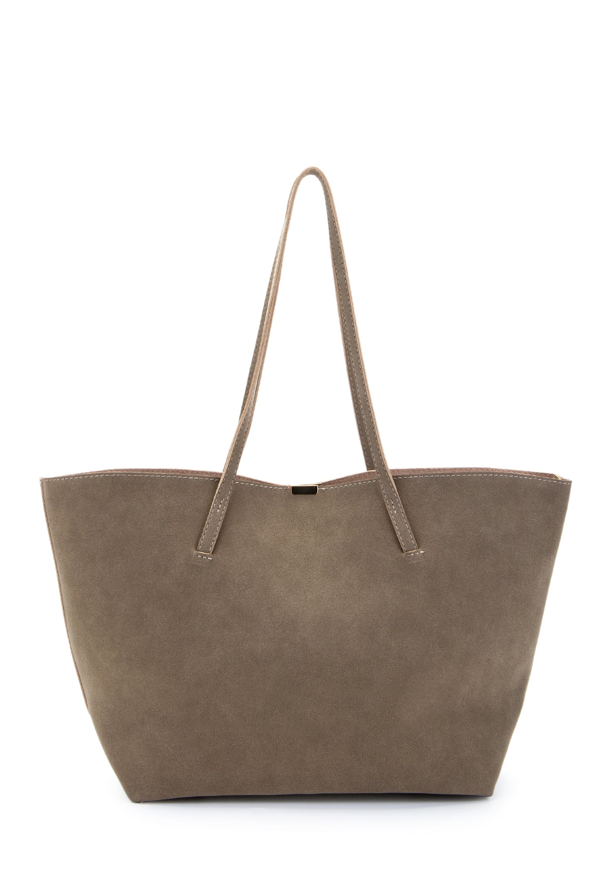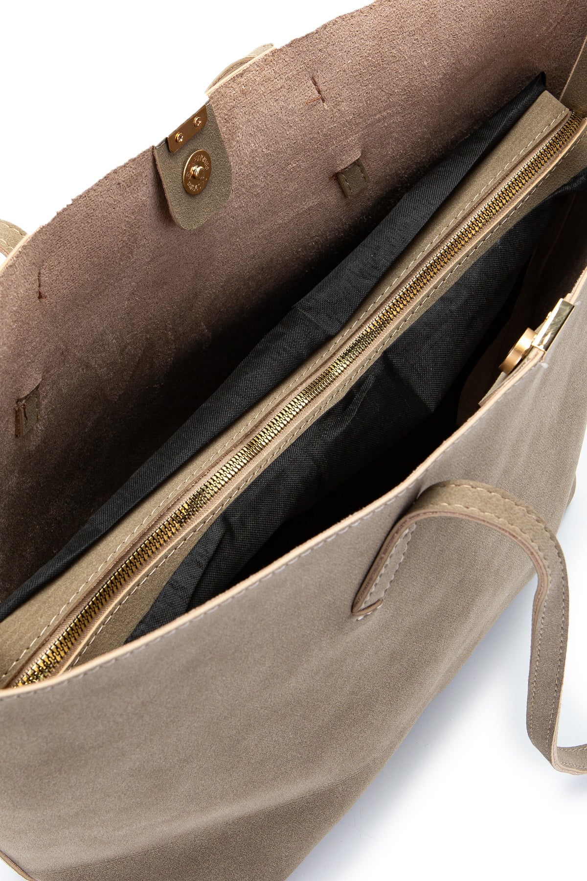 Metal Aksesuarlı Süet Duran Kol Çanta Bej