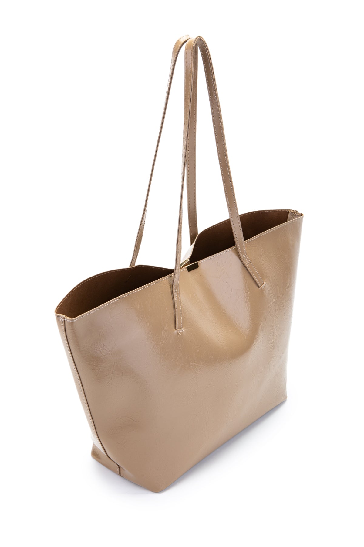 Metal Aksesuarlı Suni Deri Duran Kol Çanta Bej