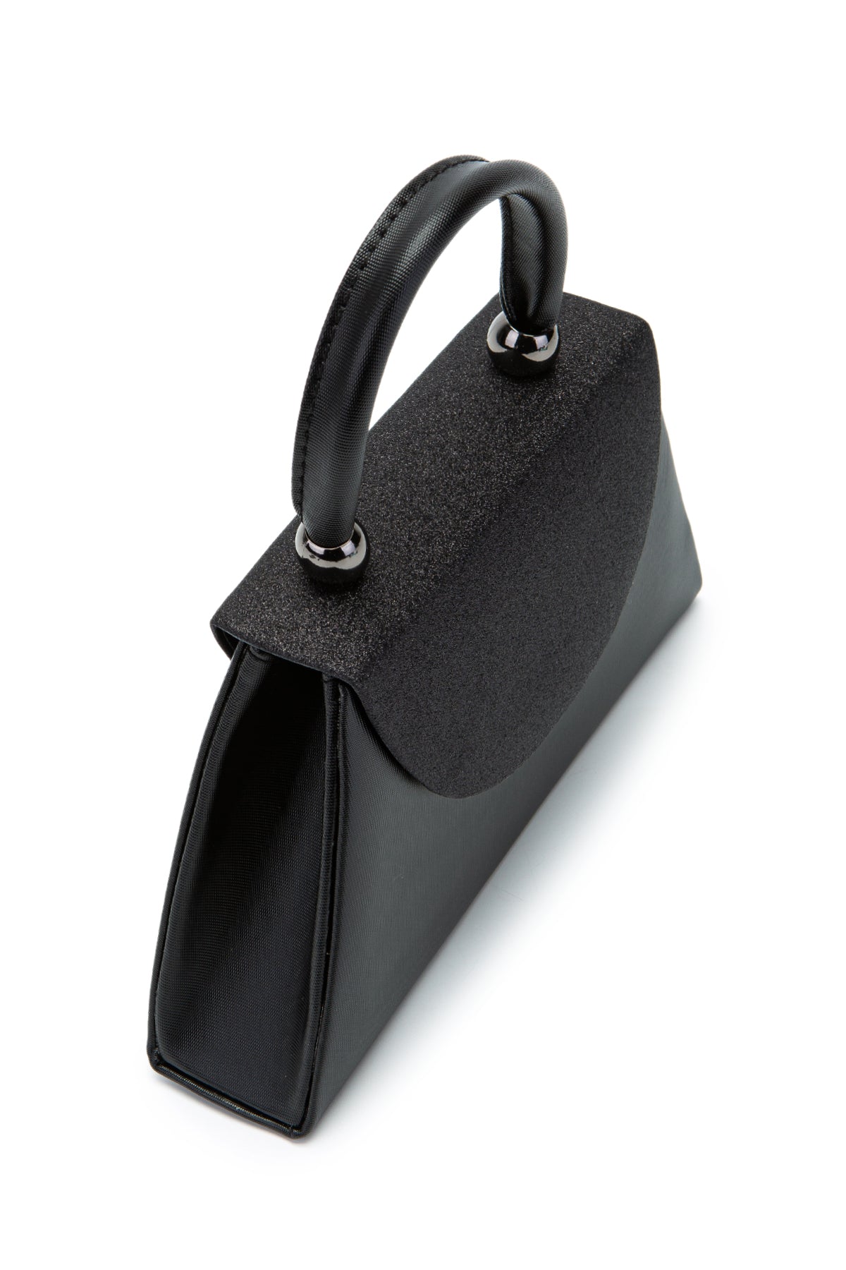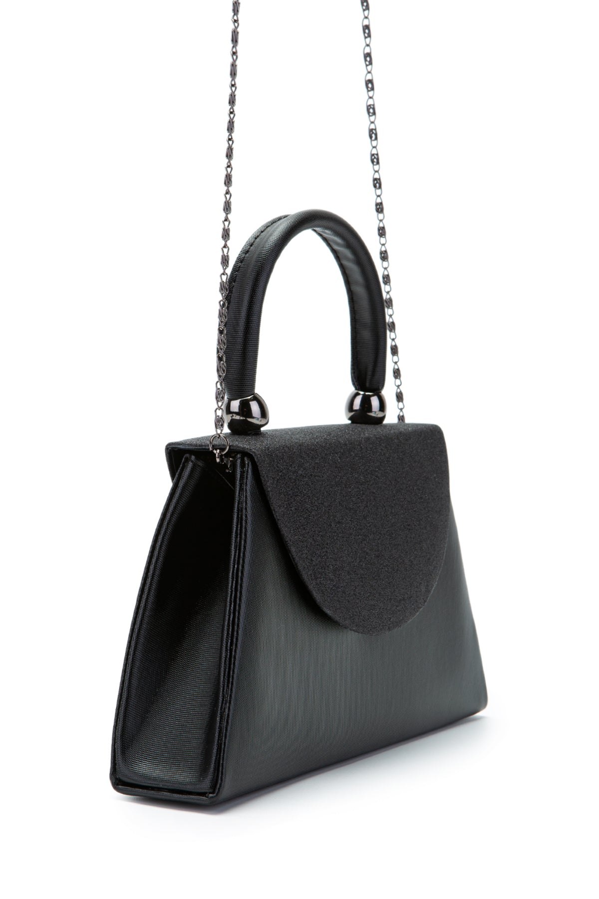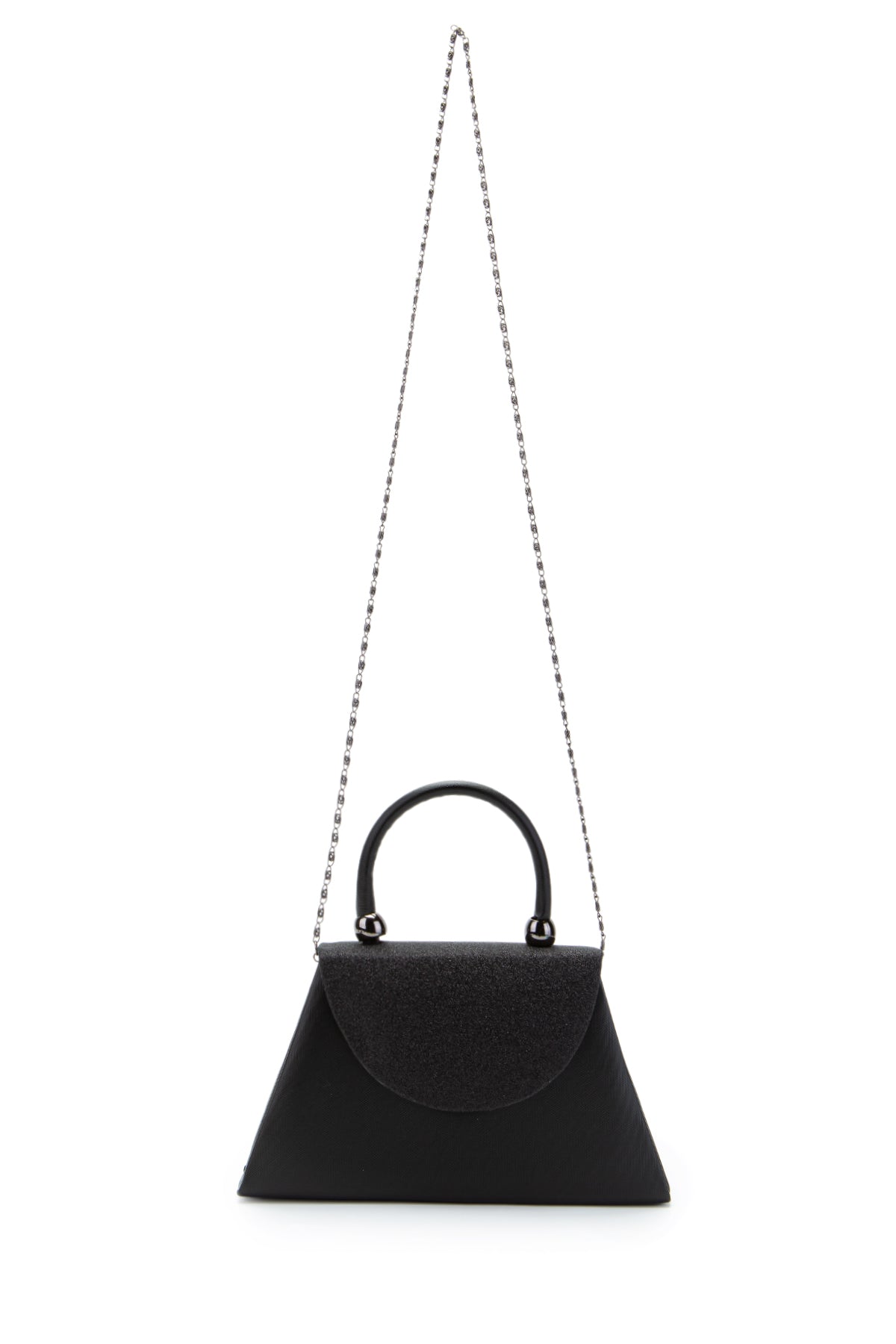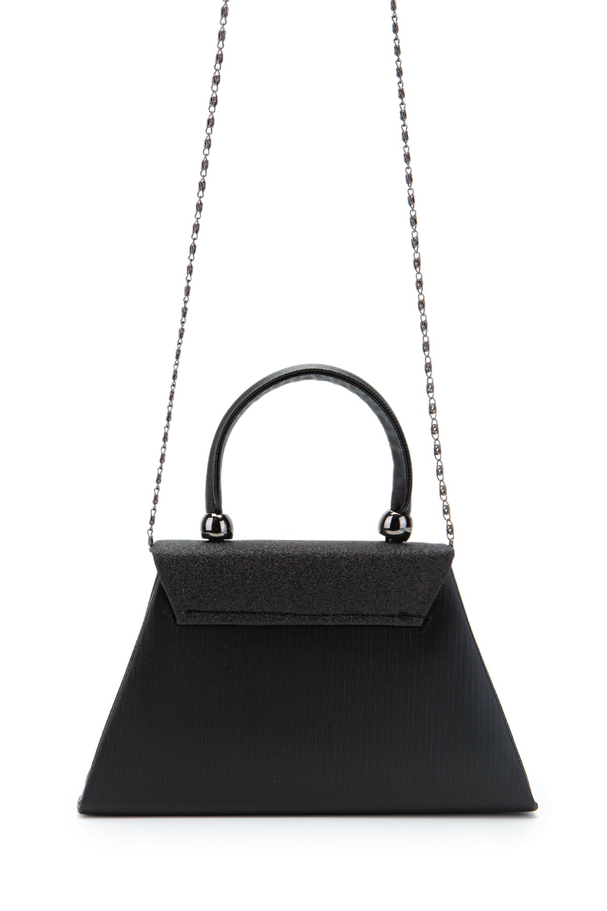 Minimalist Tasarım Simli Kapaklı Lip Abiye El Çantası Siyah