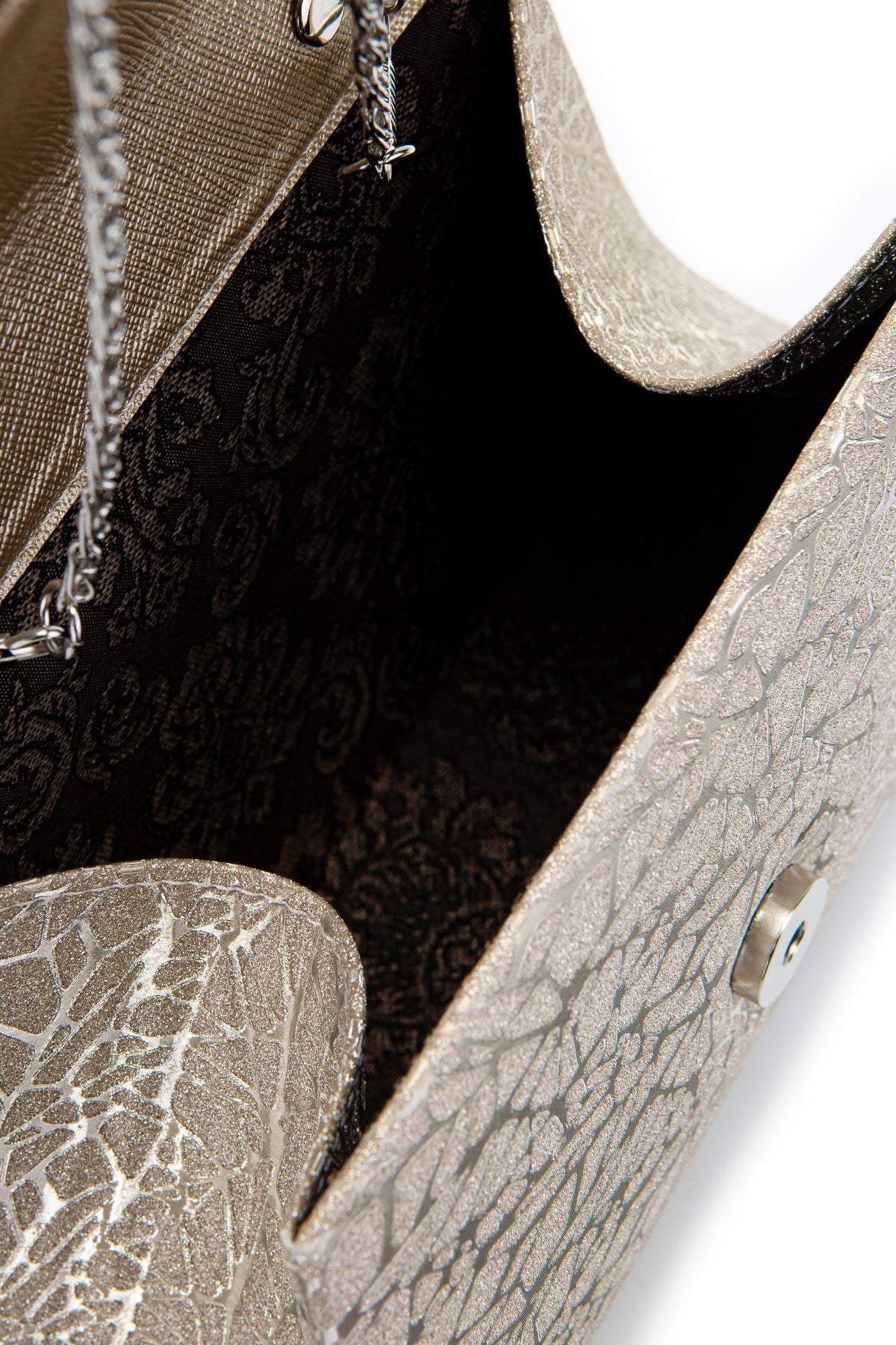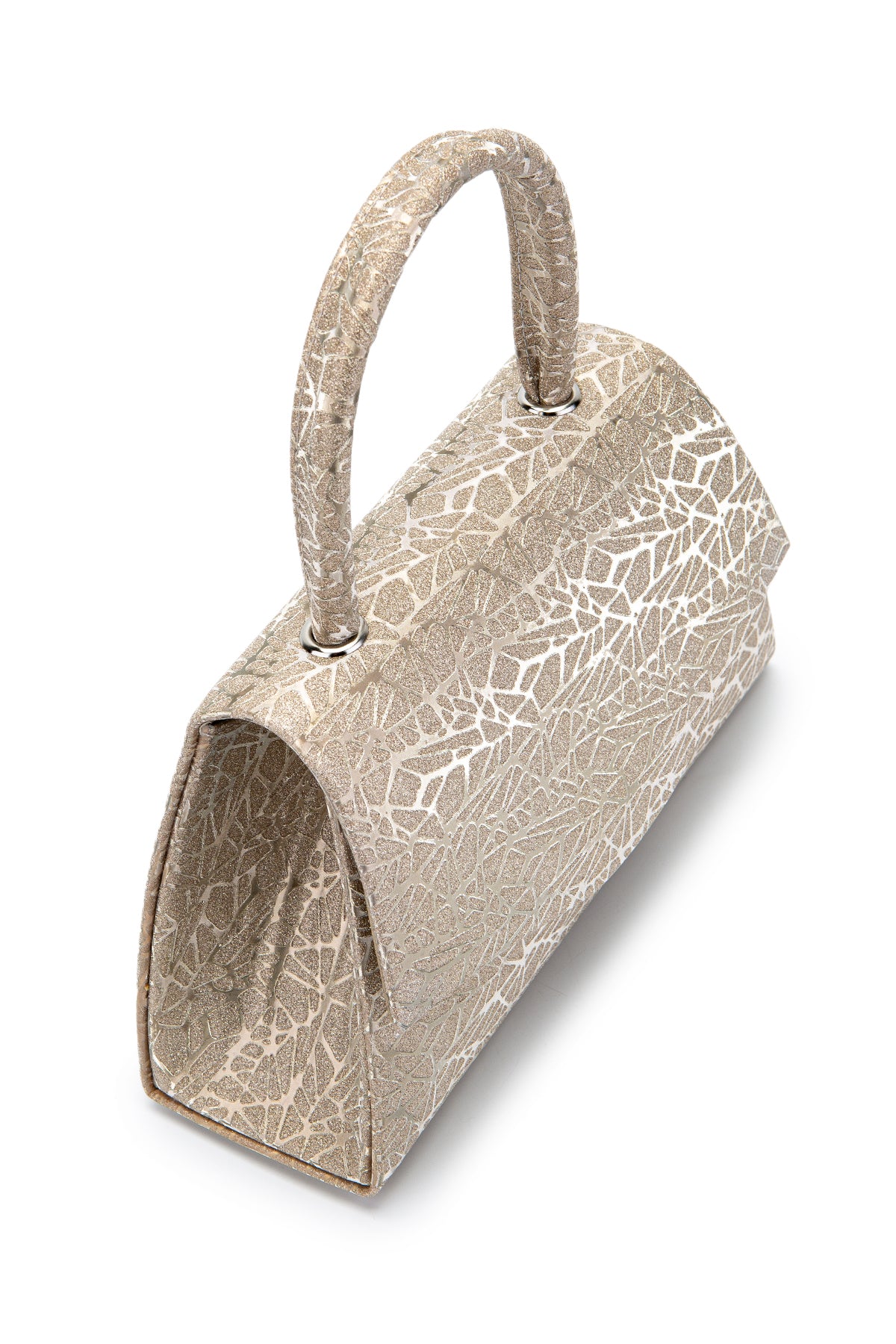 Özel Tasarım Simli Dokulu Shelia Abiye El Çantası Altın