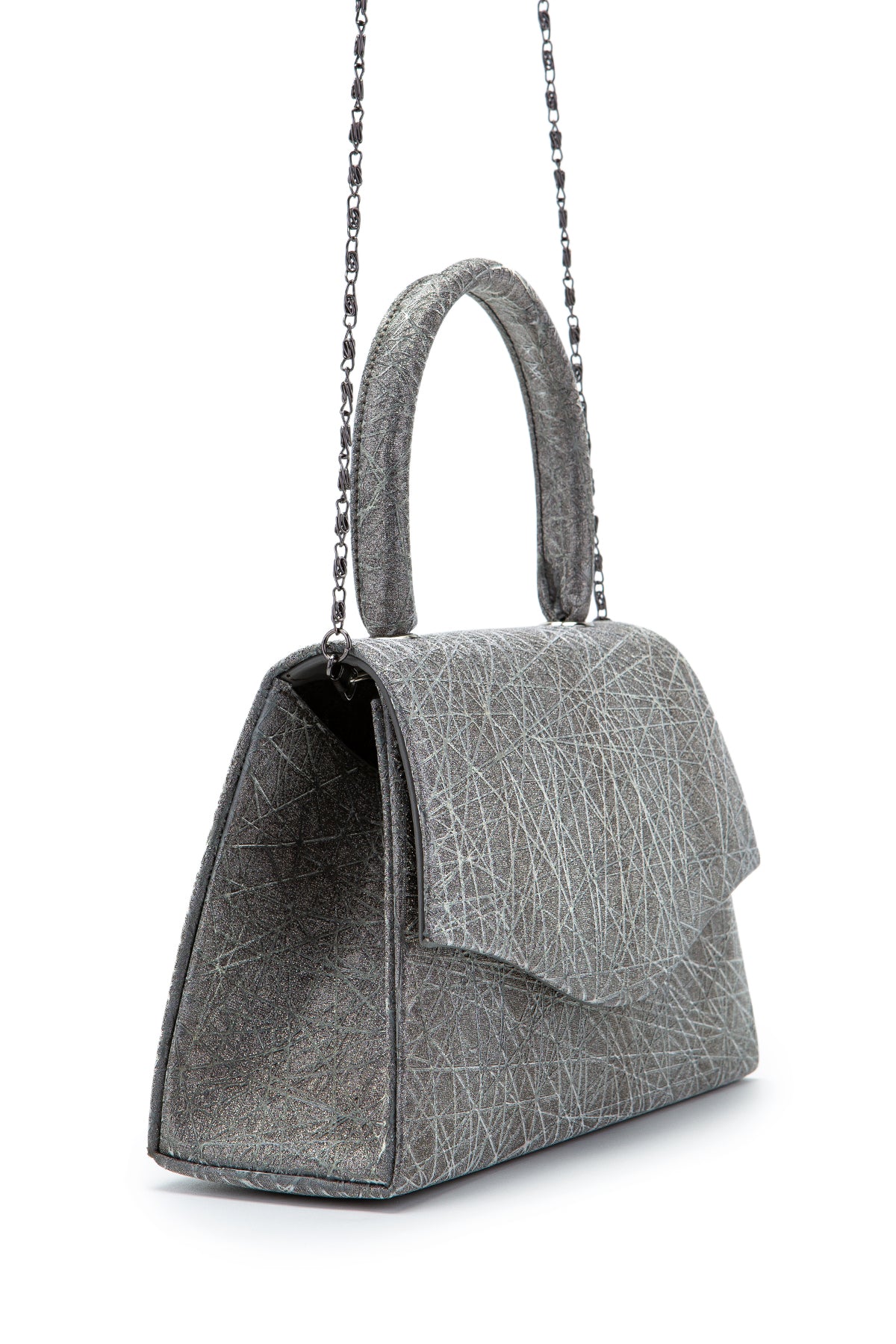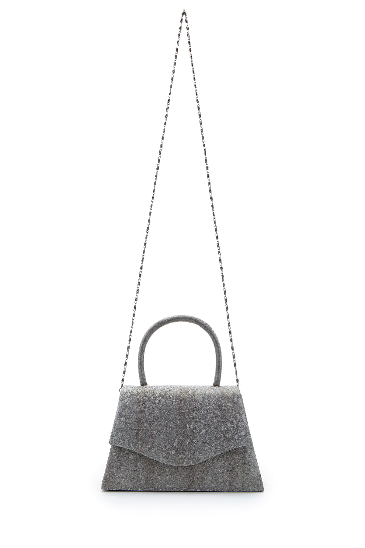 Özel Tasarım Simli Dokulu Shelia Abiye El Çantası Antrasit