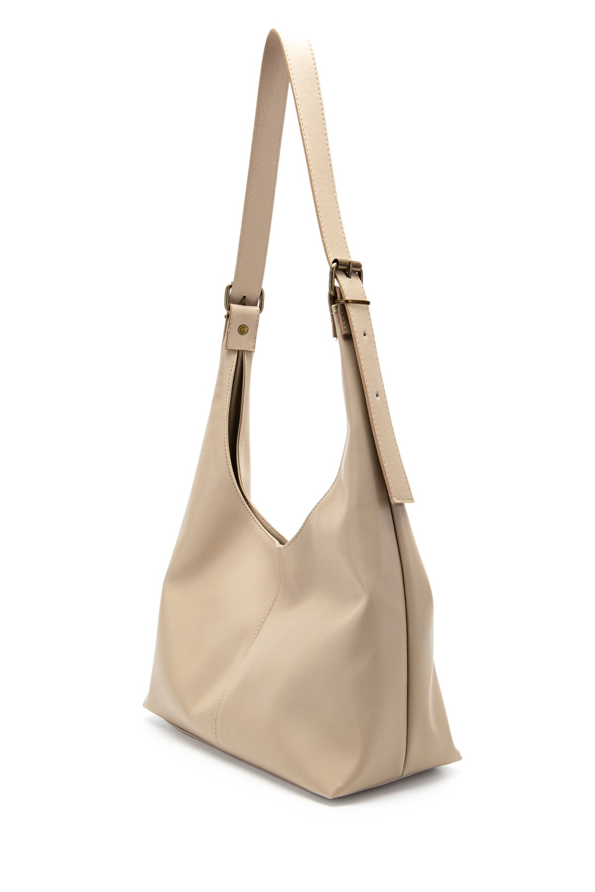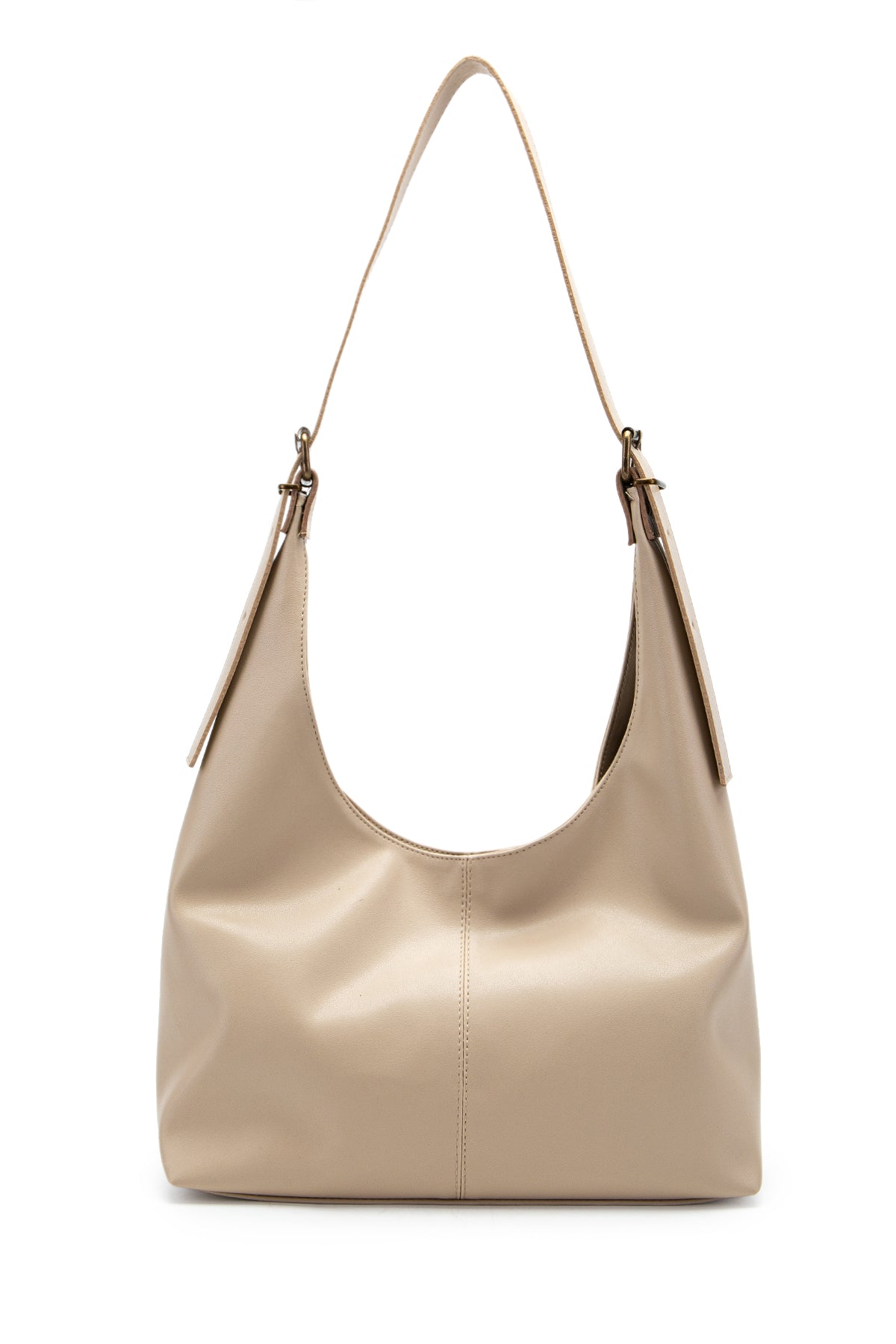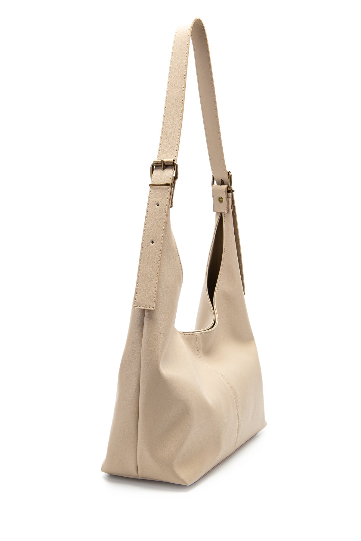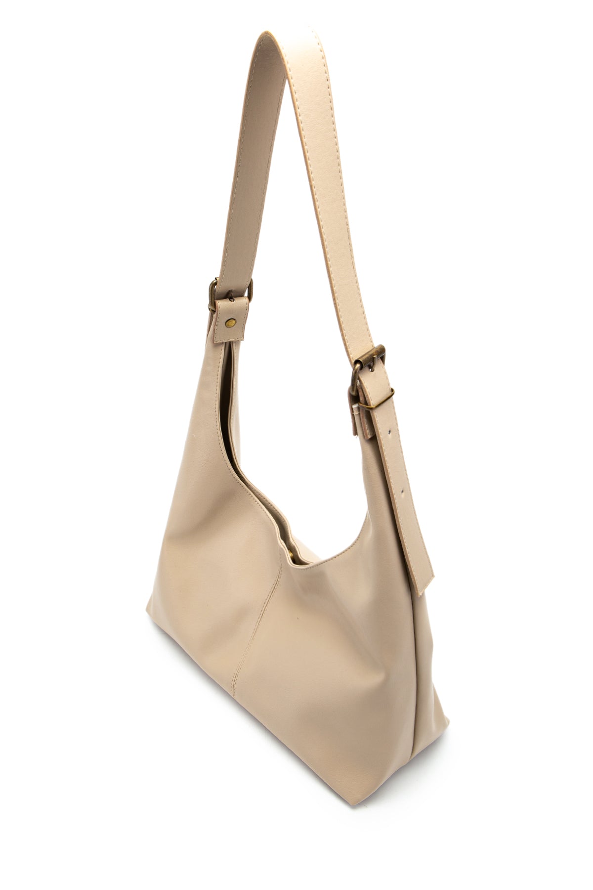Suni Deri Cris Kemer Detaylı Salaş Kol Çanta Bej