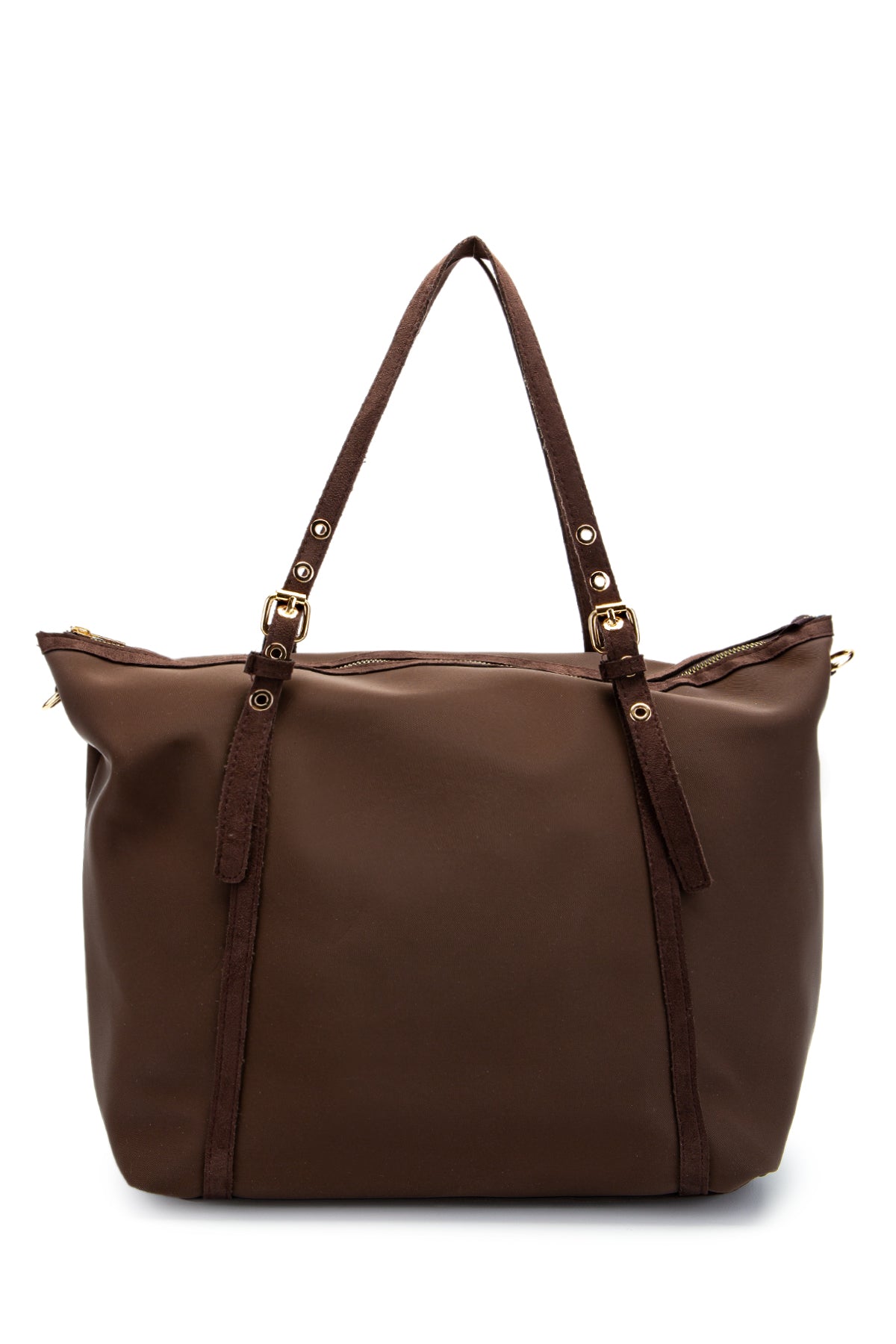 Suni Deri Şerit Detaylı Titus Kol Çanta Kahverengi