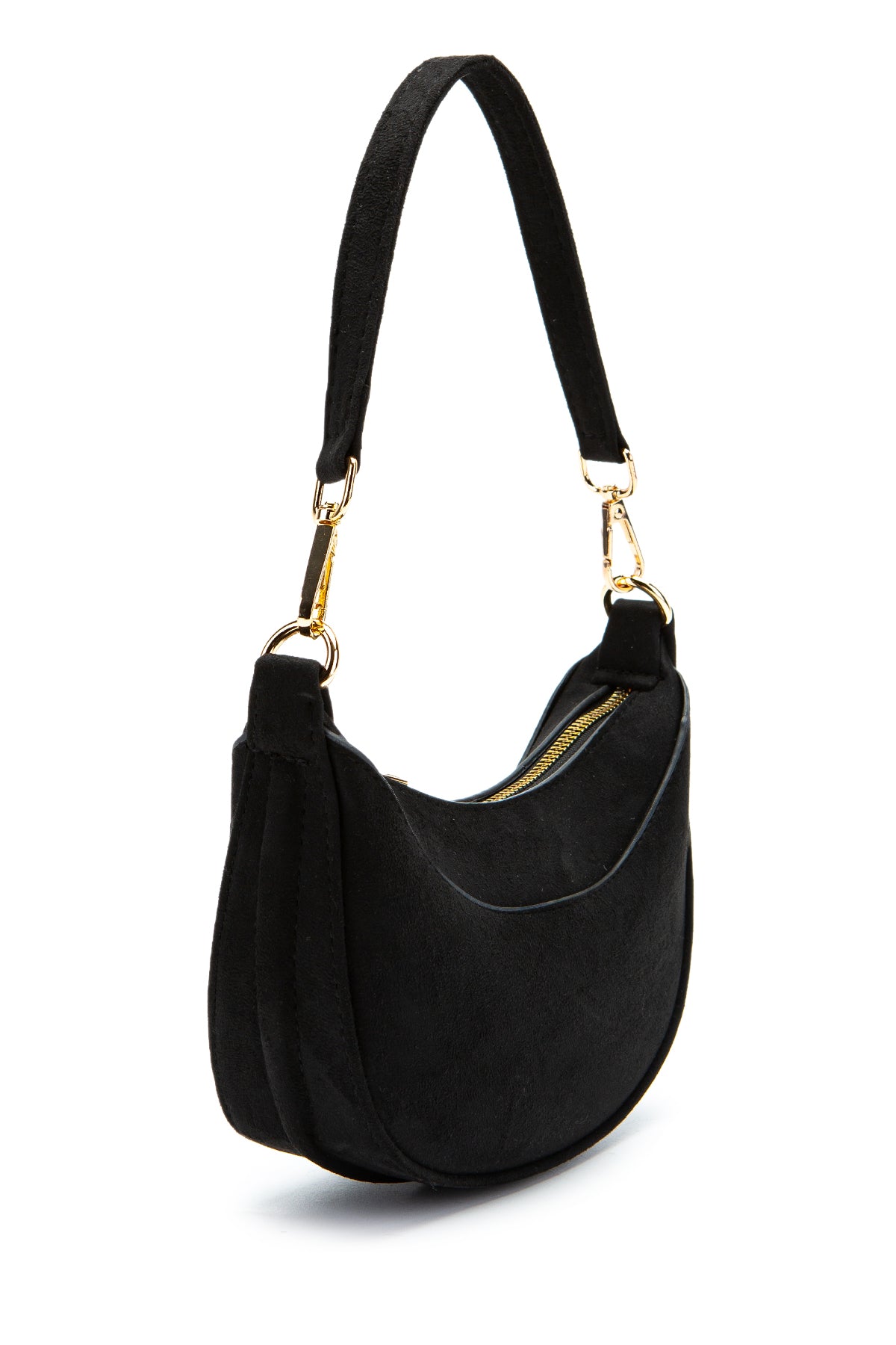 Süet Yarım Ay Kadın Çapraz Çanta Lance Siyah