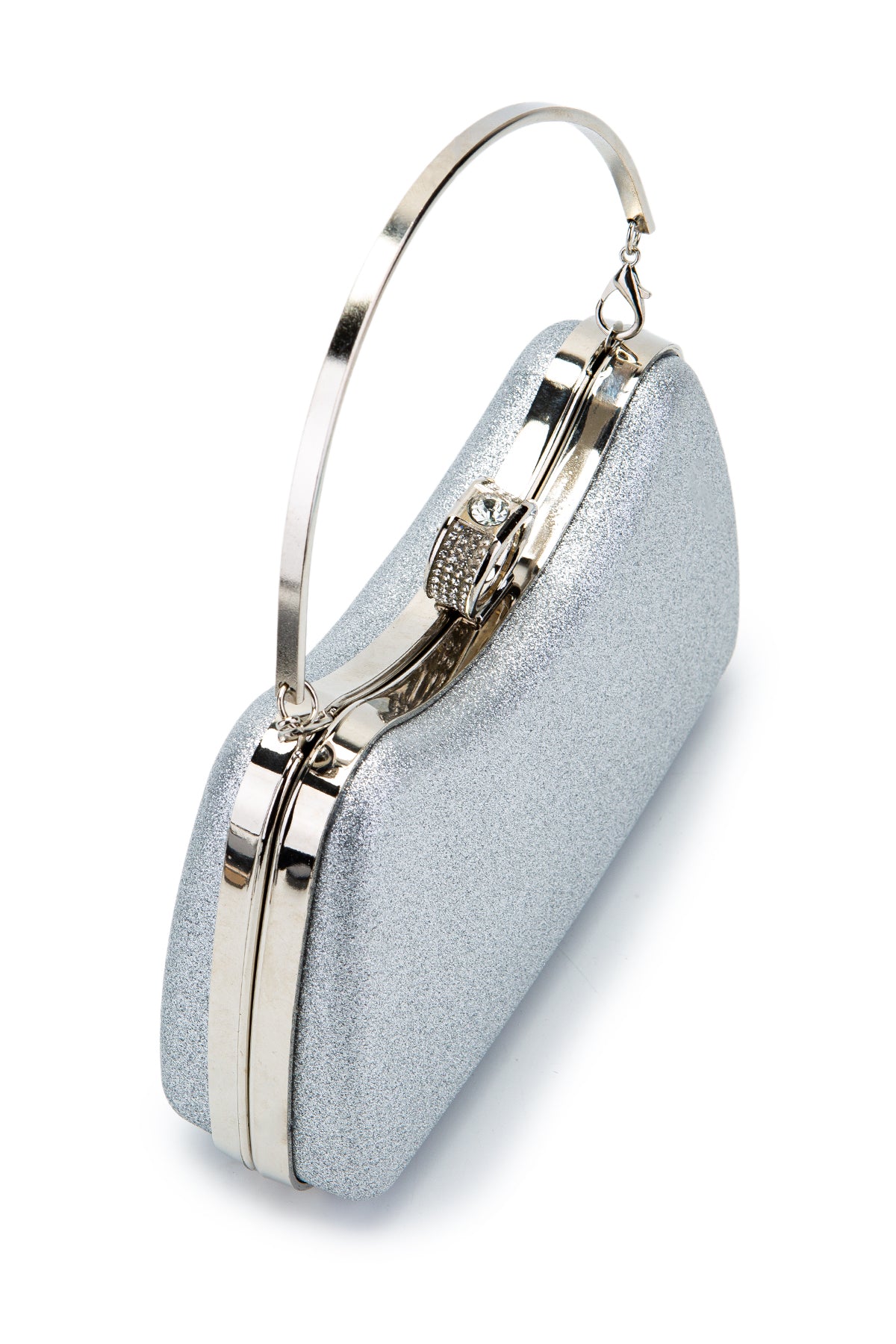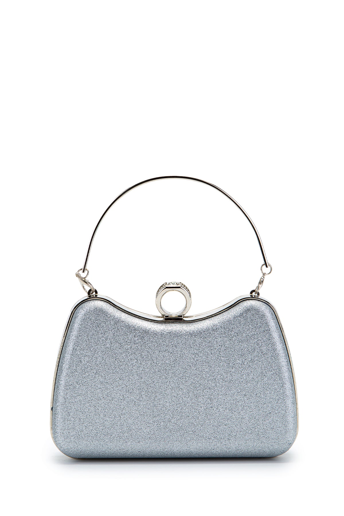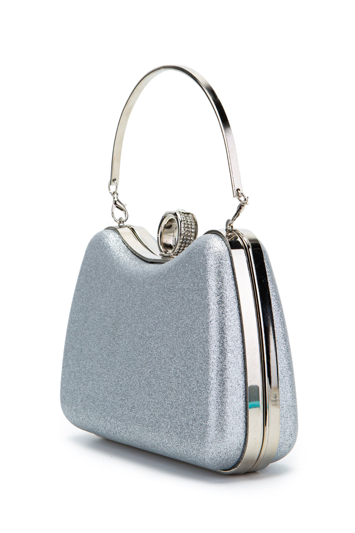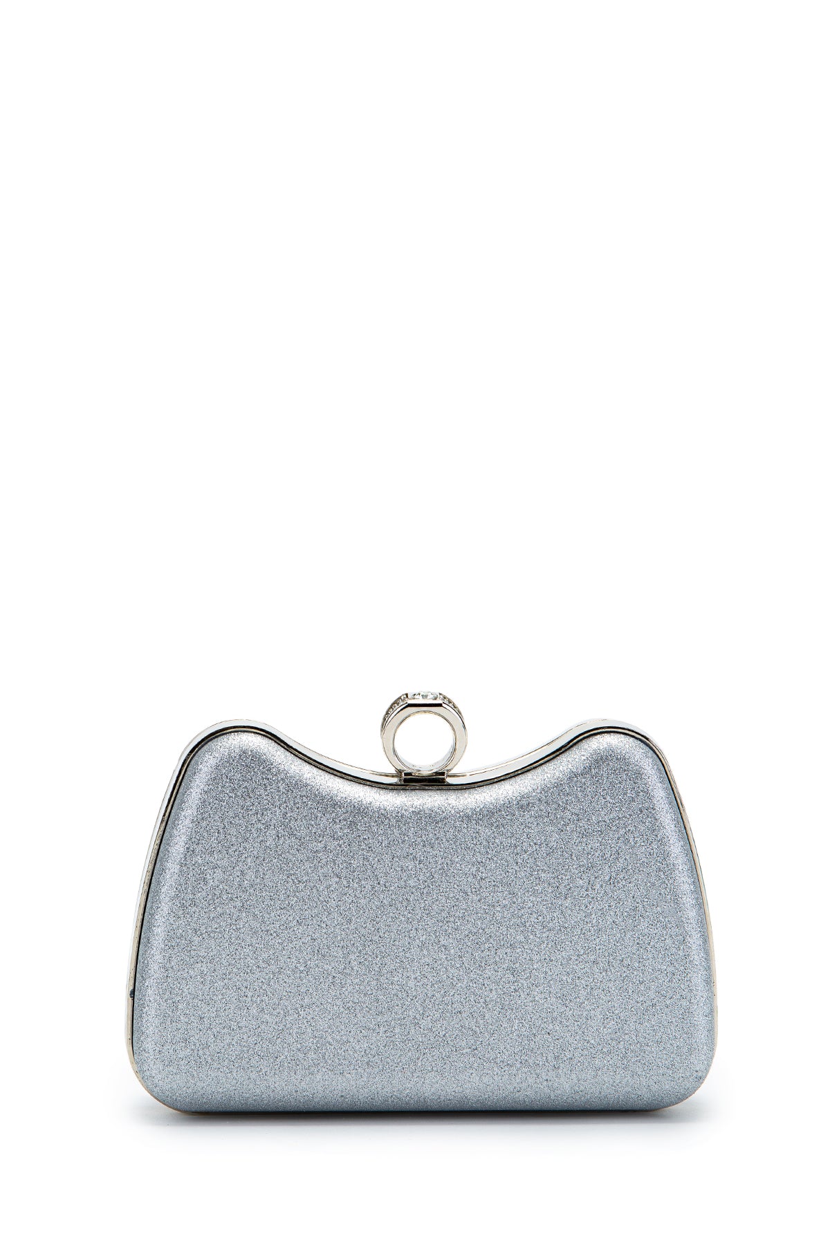 Yüzük Klips Detaylı Simli Morton Abiye Çanta Gümüş