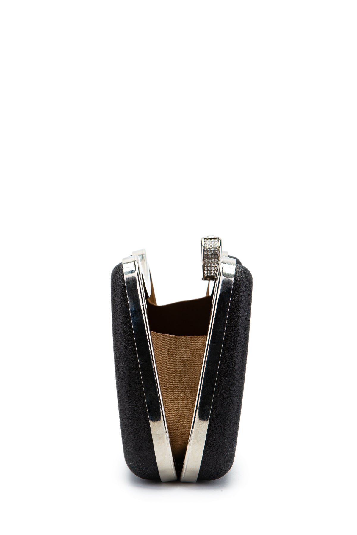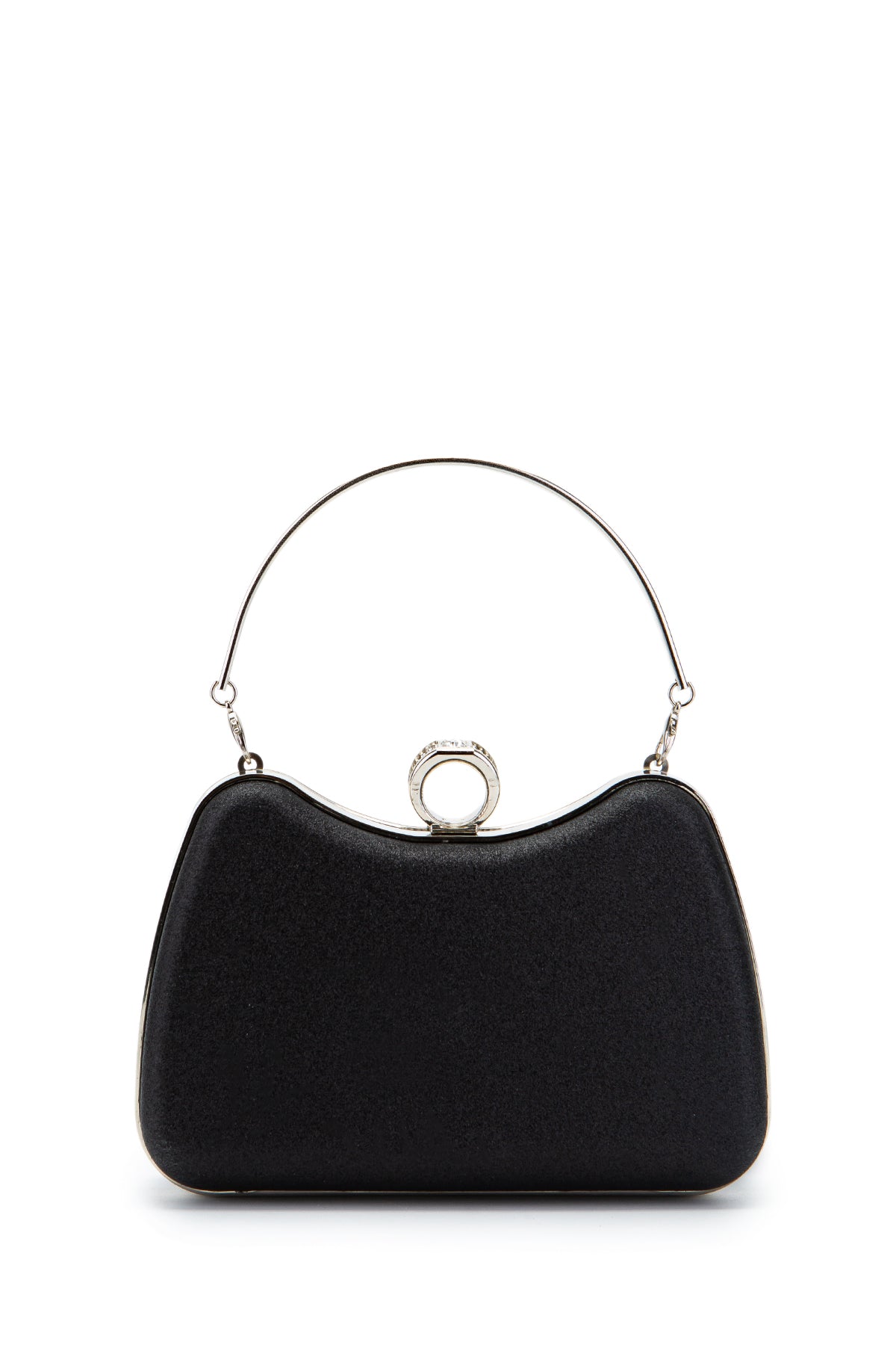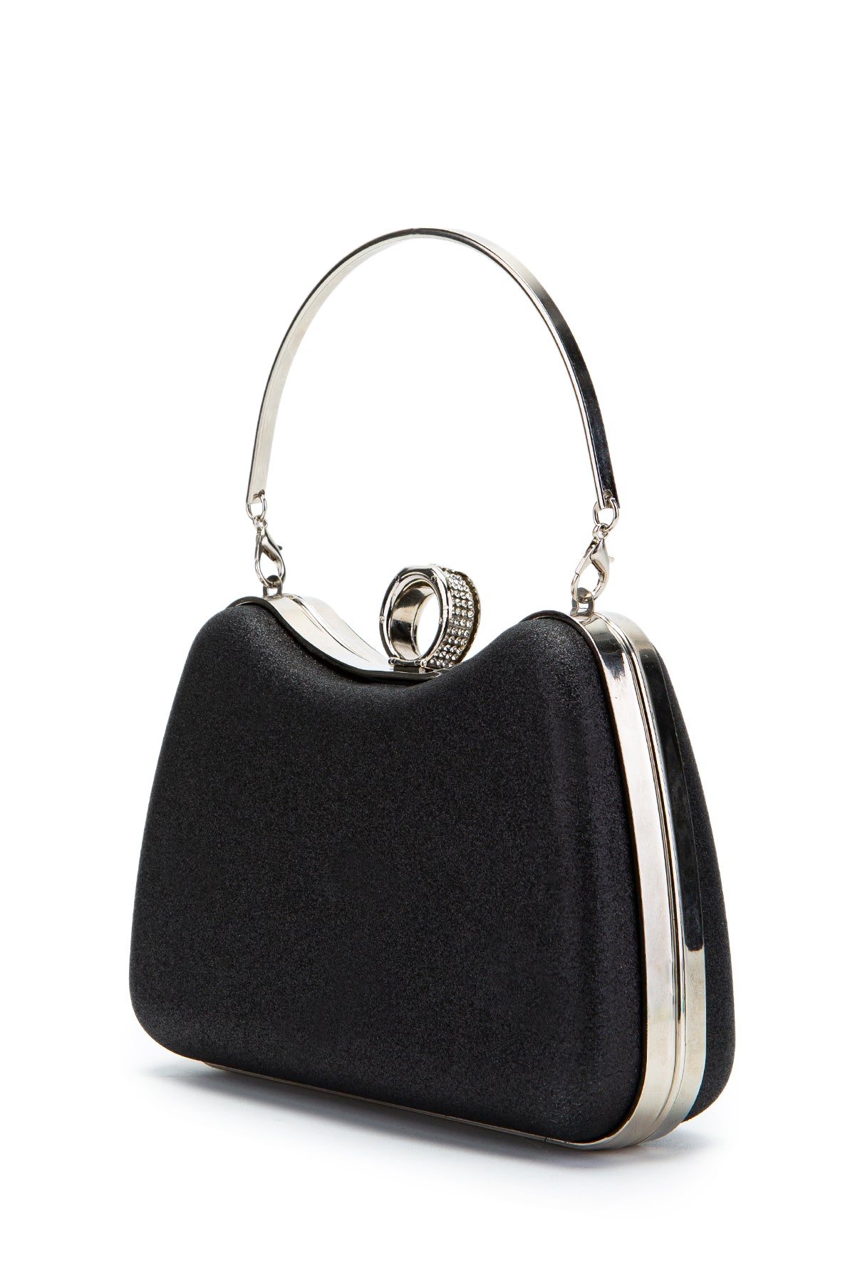 Yüzük Klips Detaylı Simli Morton Abiye Çanta Siyah