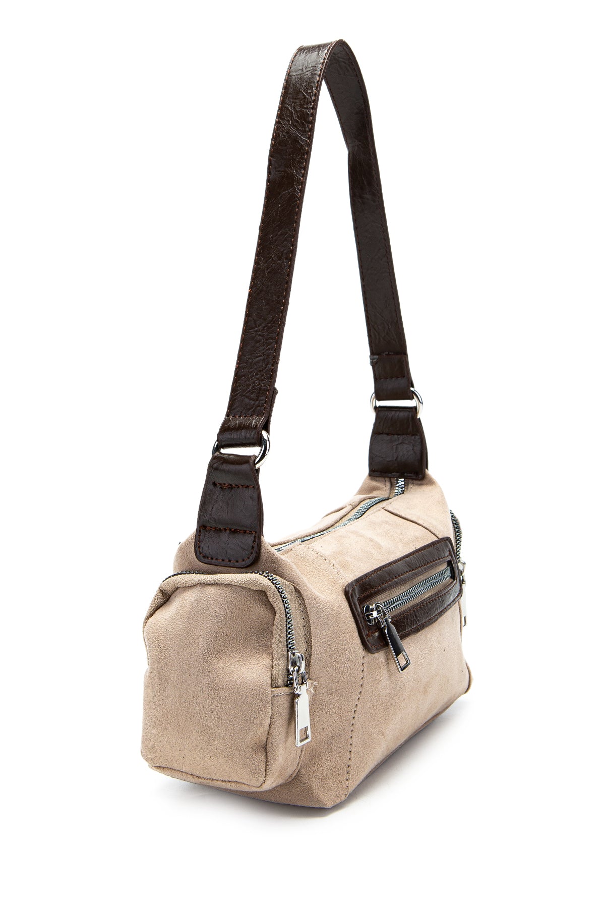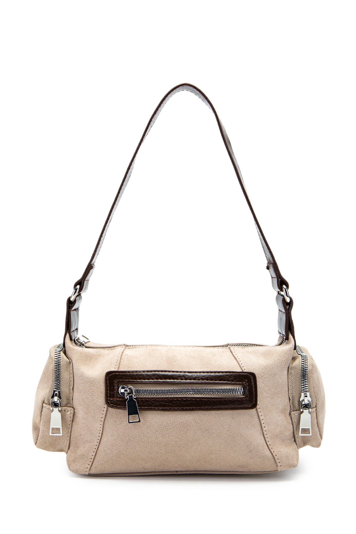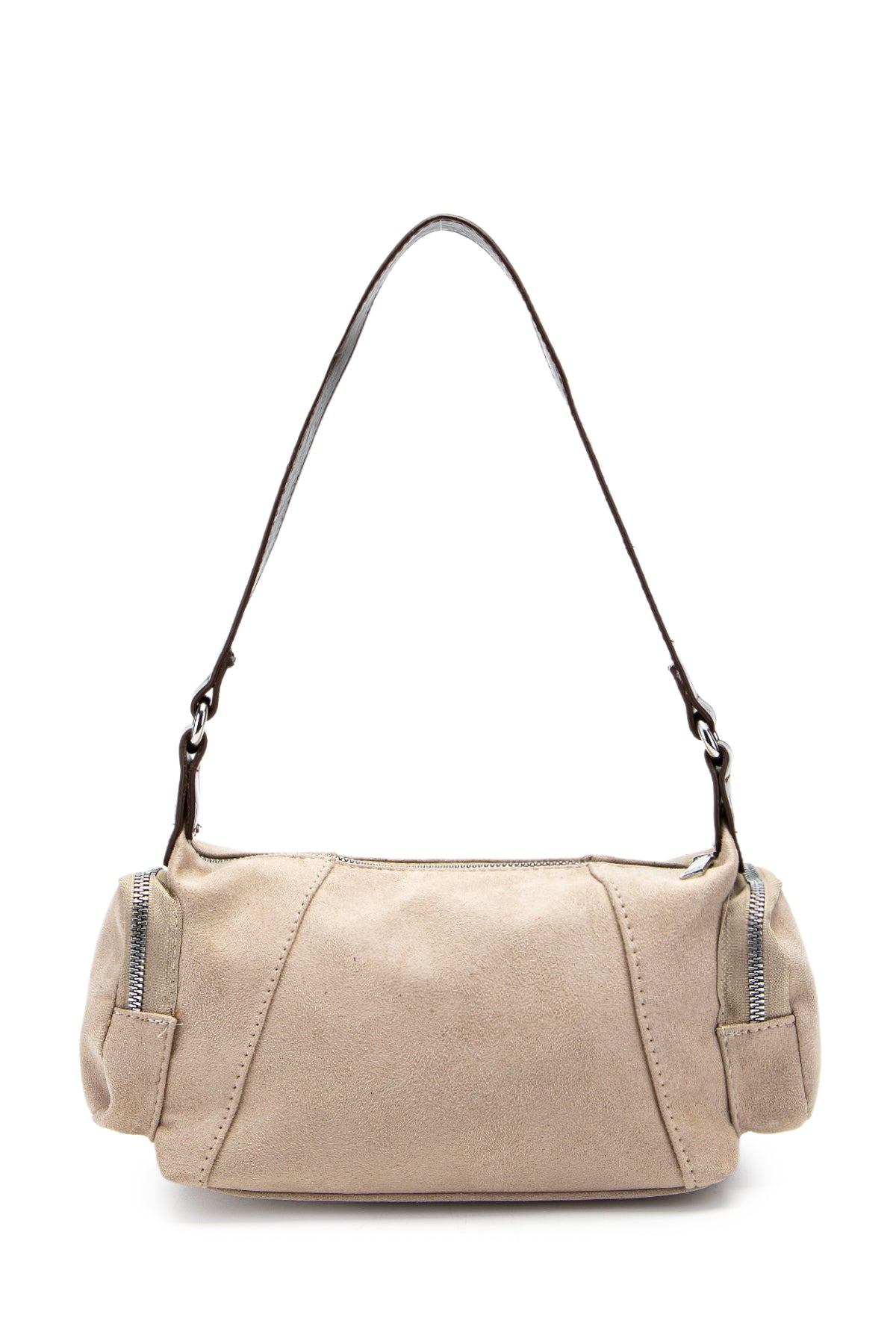 Yanları Cep Detaylı Süet Yoru Kol Çanta Bej - Kahverengi