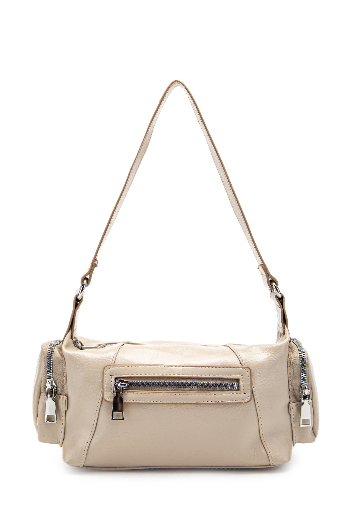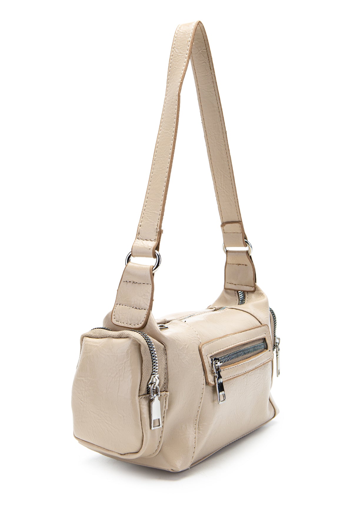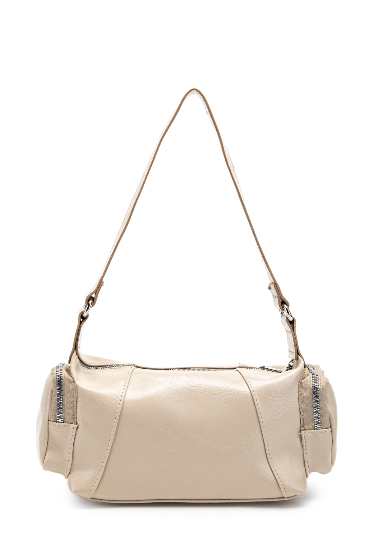 Yanları Cep Detaylı Suni Deri Yoru Kol Çanta Bej