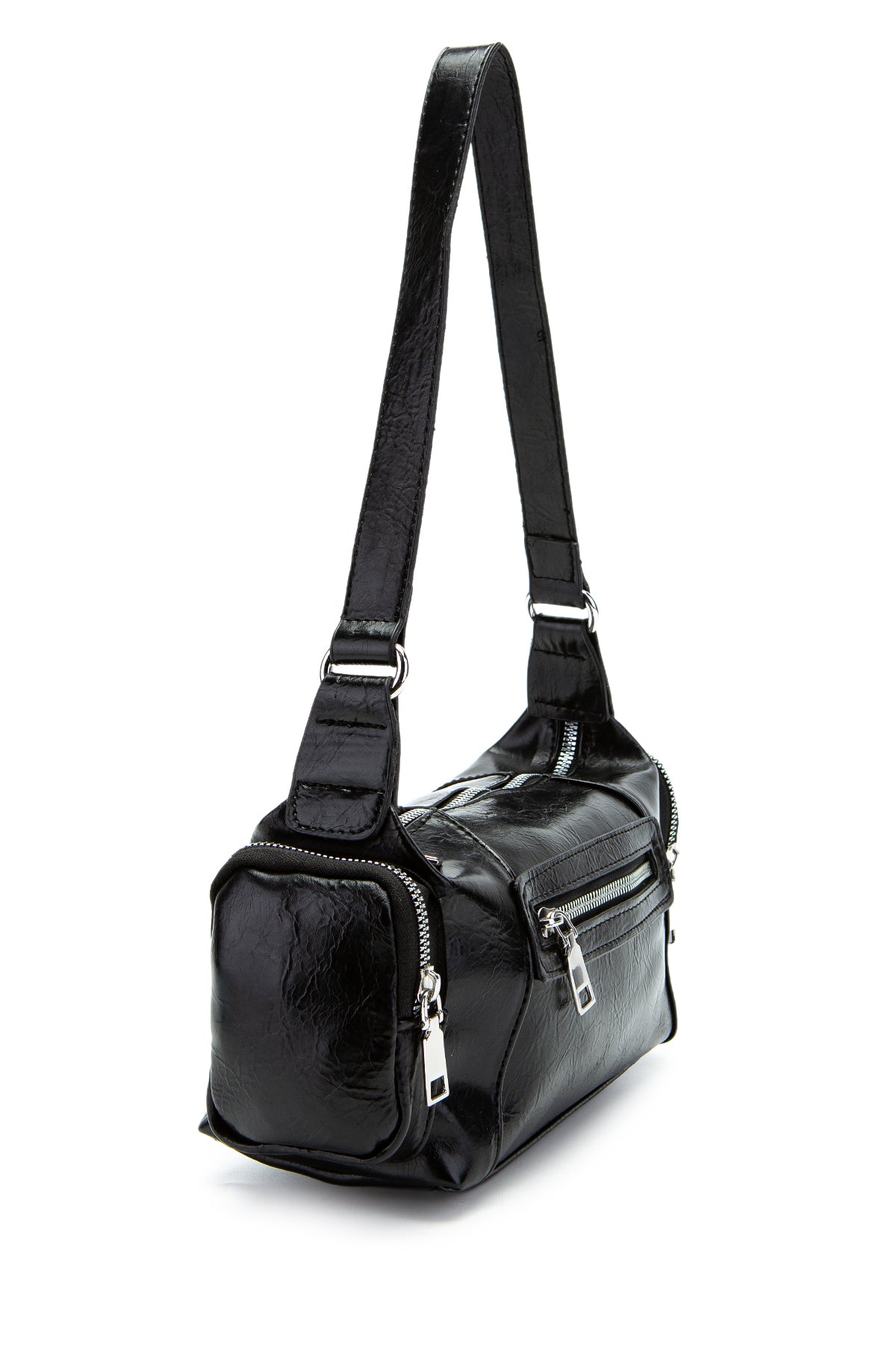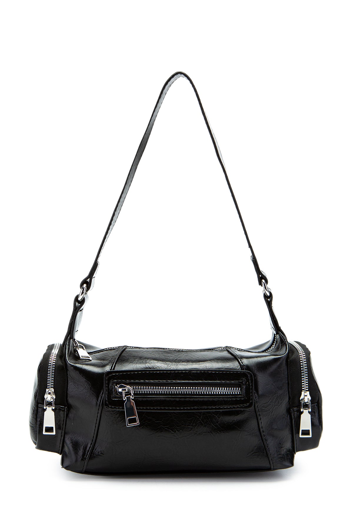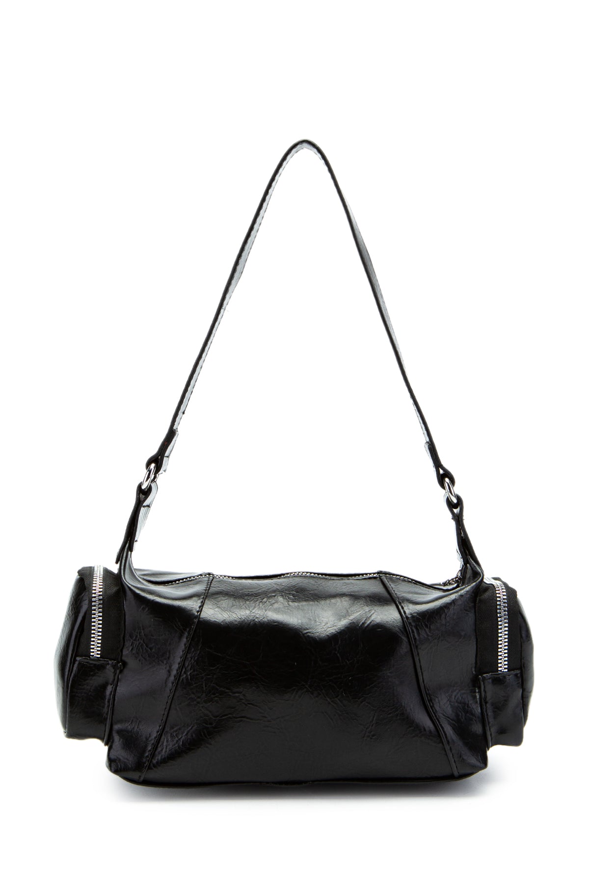 Yanları Cep Detaylı Suni Deri Yoru Kol Çanta Siyah