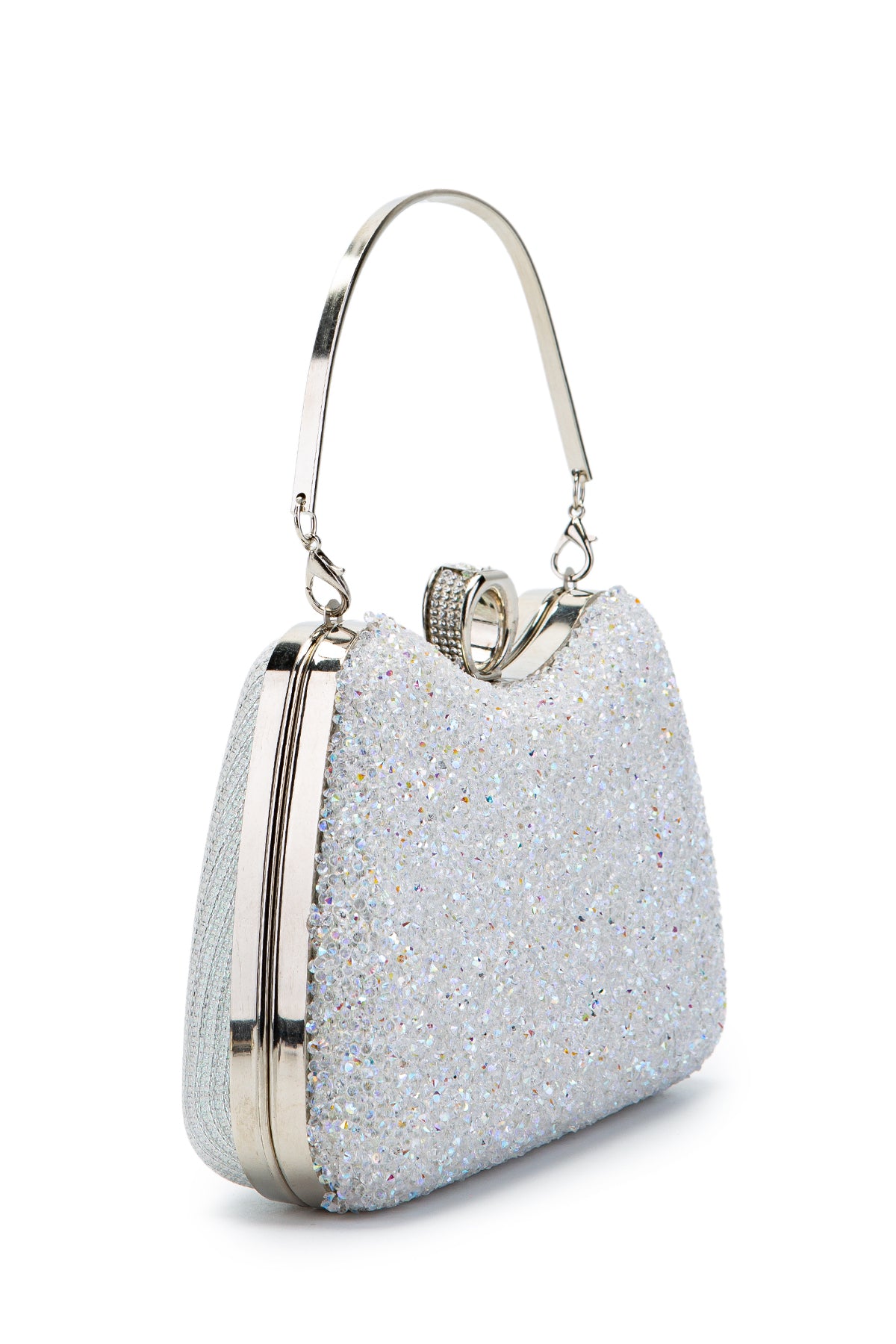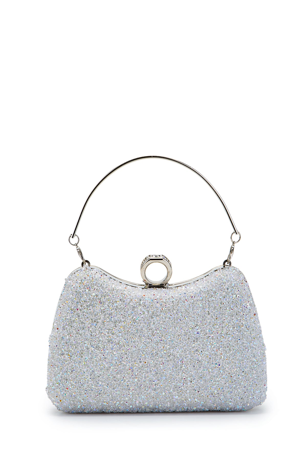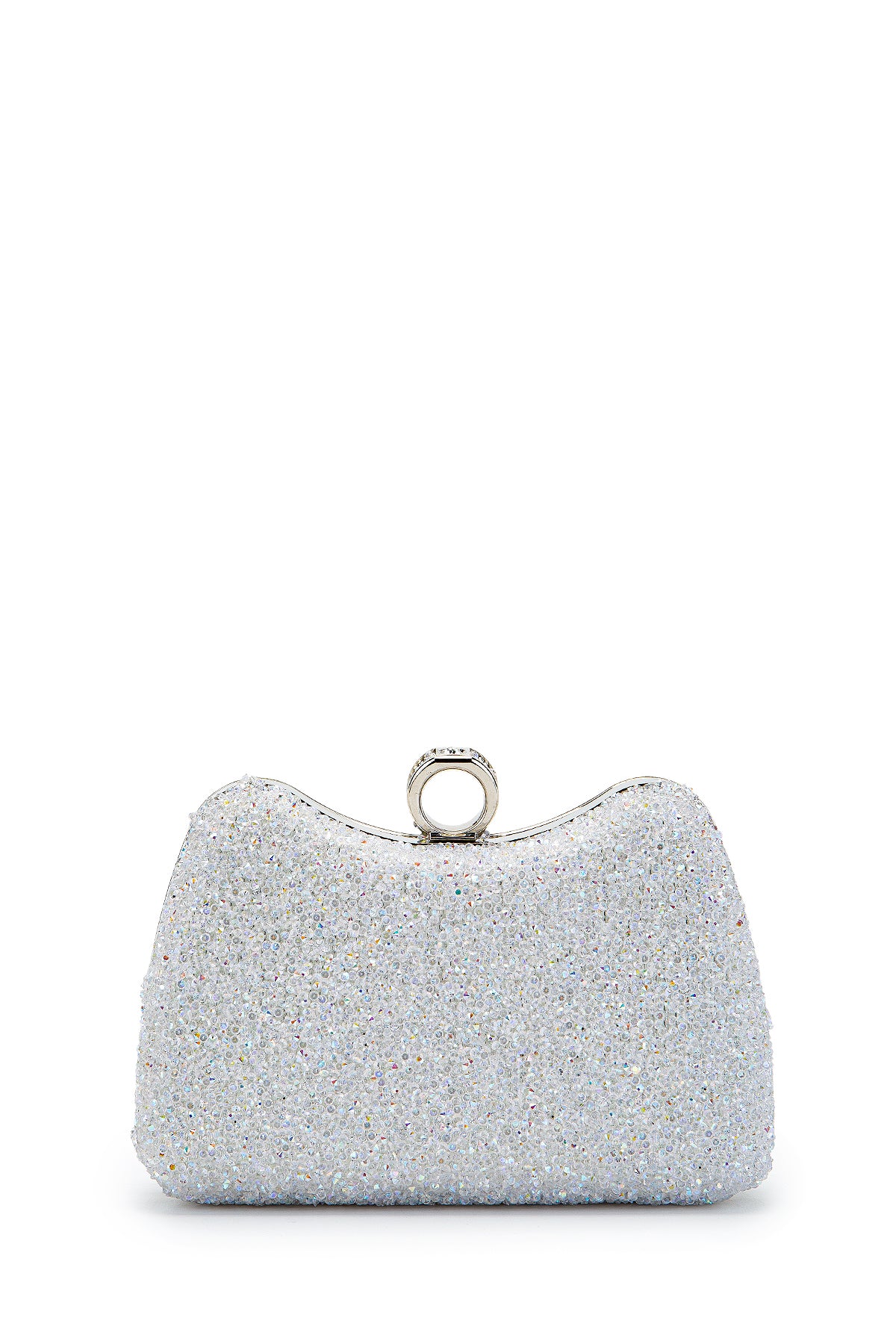 Yüzük Detaylı Taşlı Amanda Abiye El Çantası Beyaz