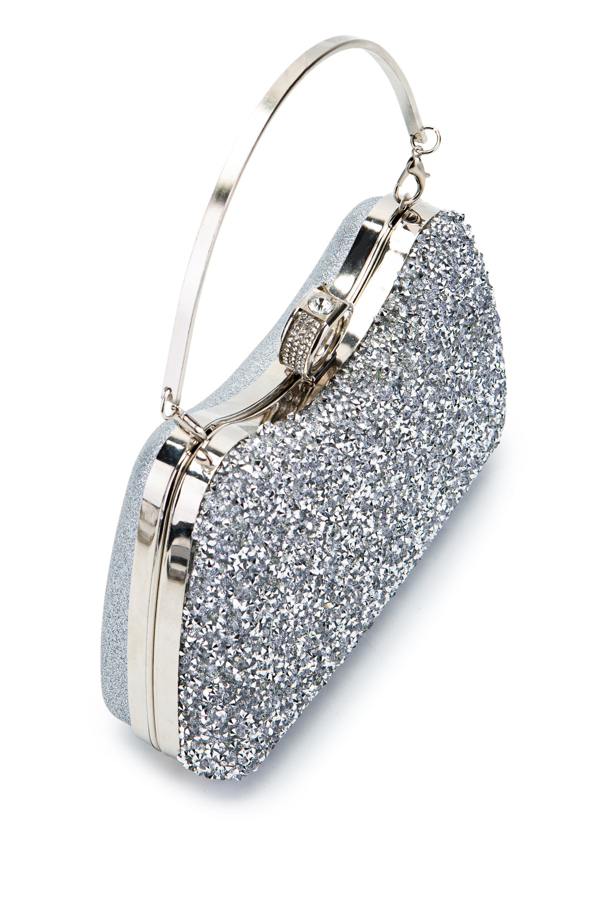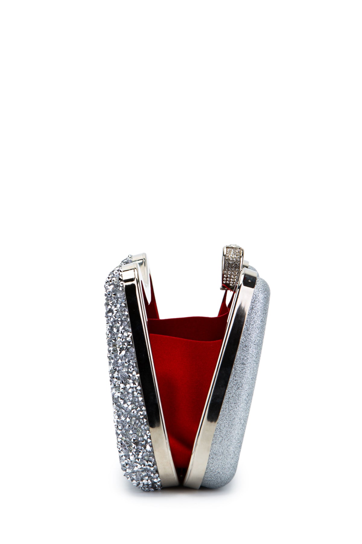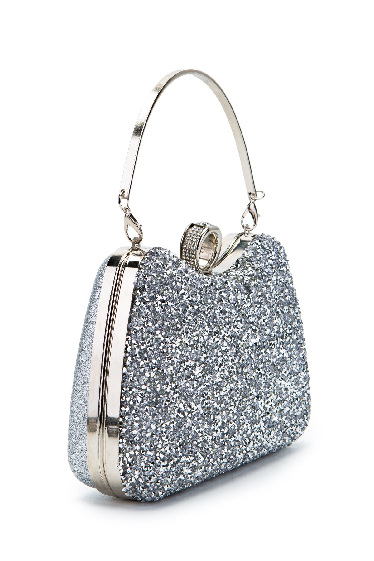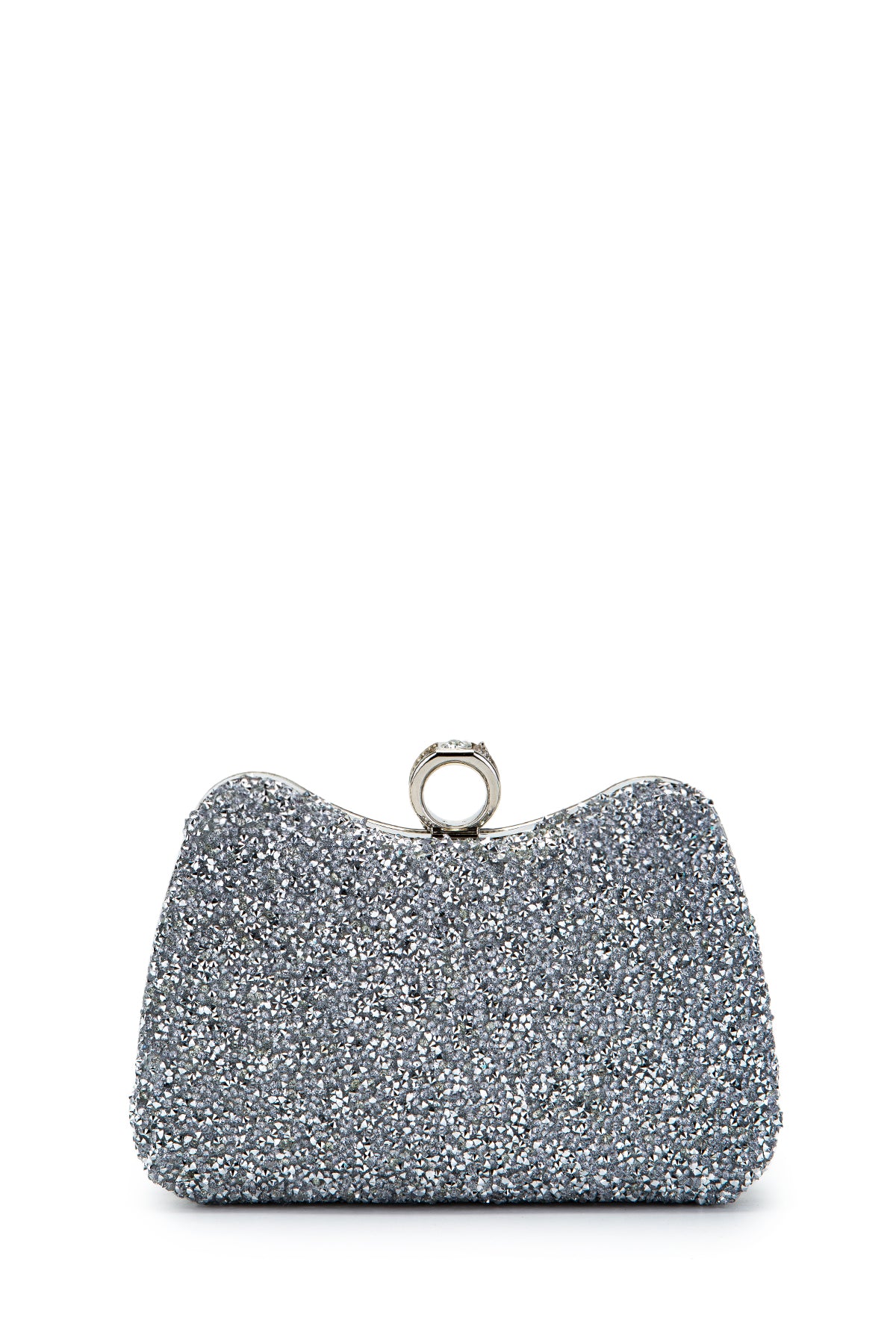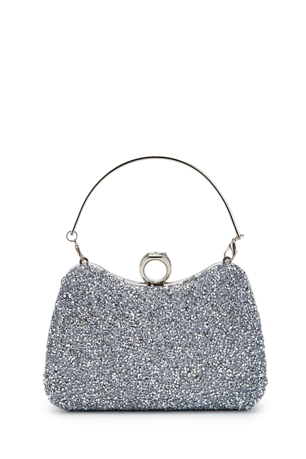 Yüzük Detaylı Taşlı Amanda Abiye El Çantası Gümüş