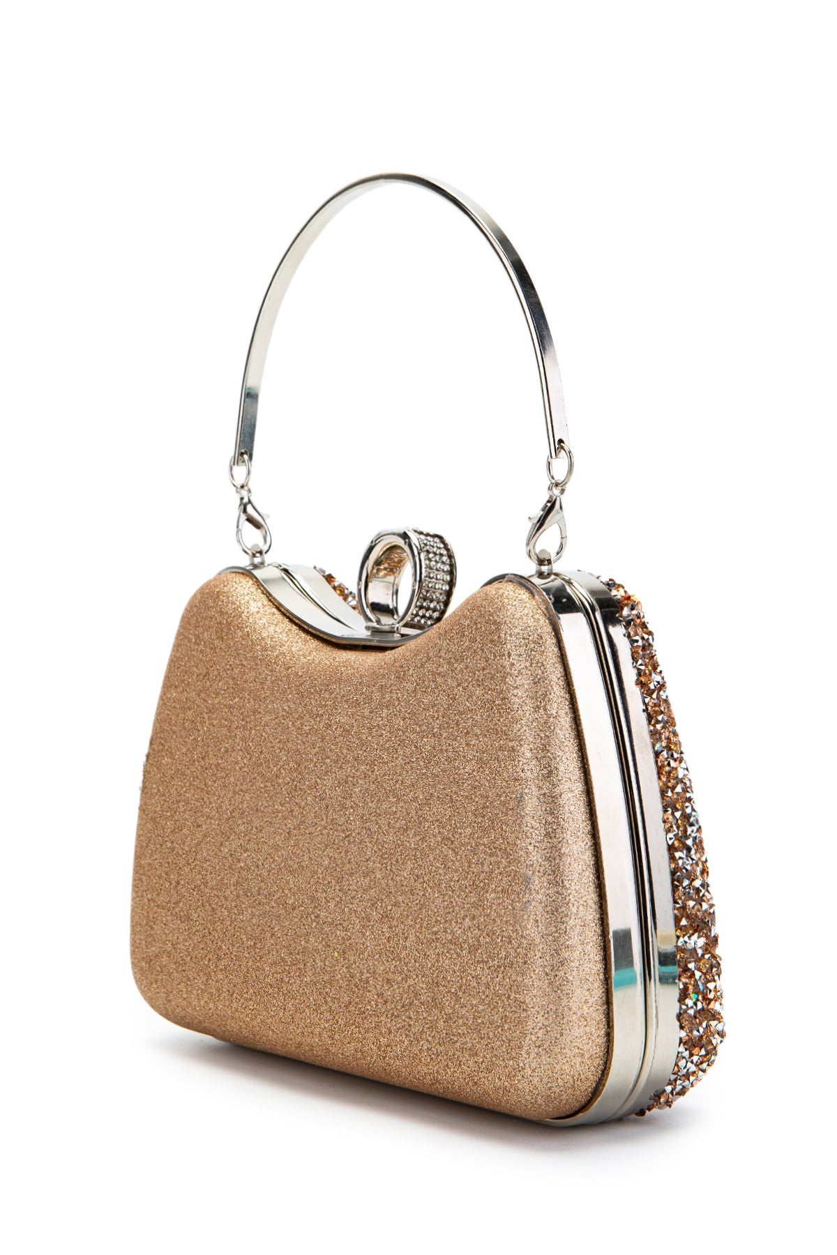 Yüzük Detaylı Taşlı Amanda Abiye El Çantası Pudra